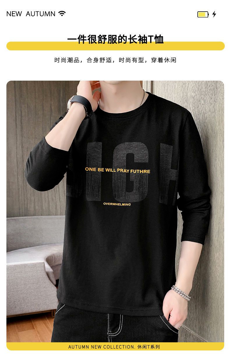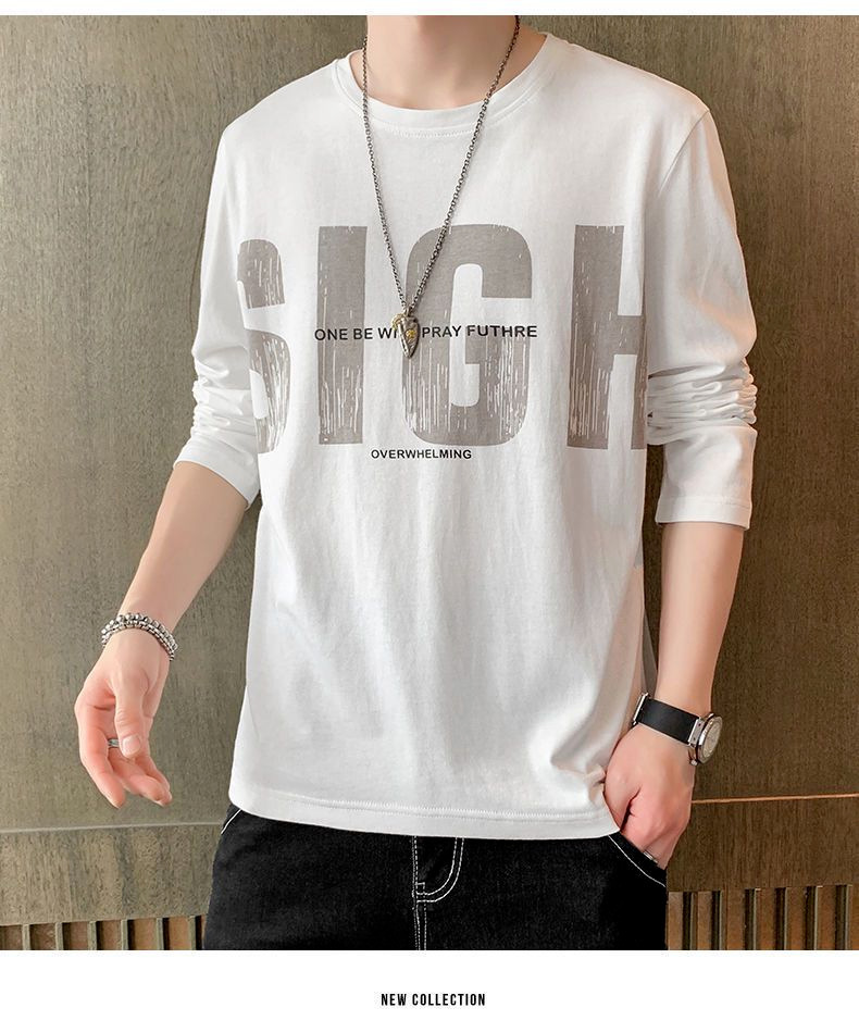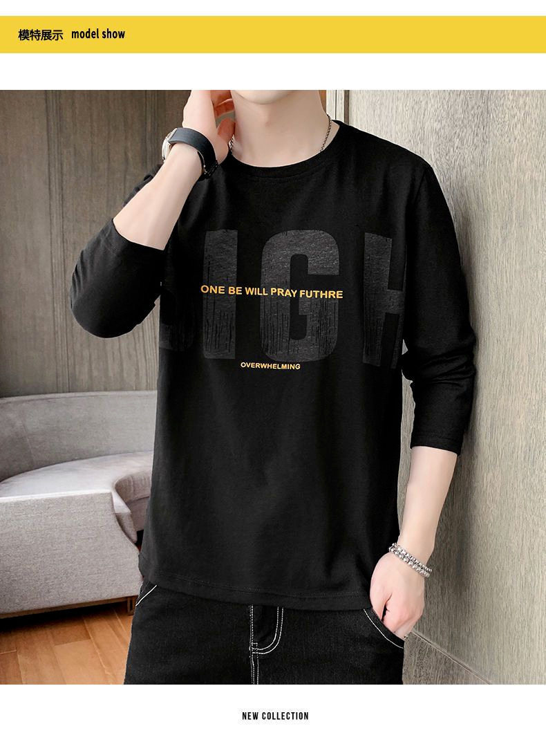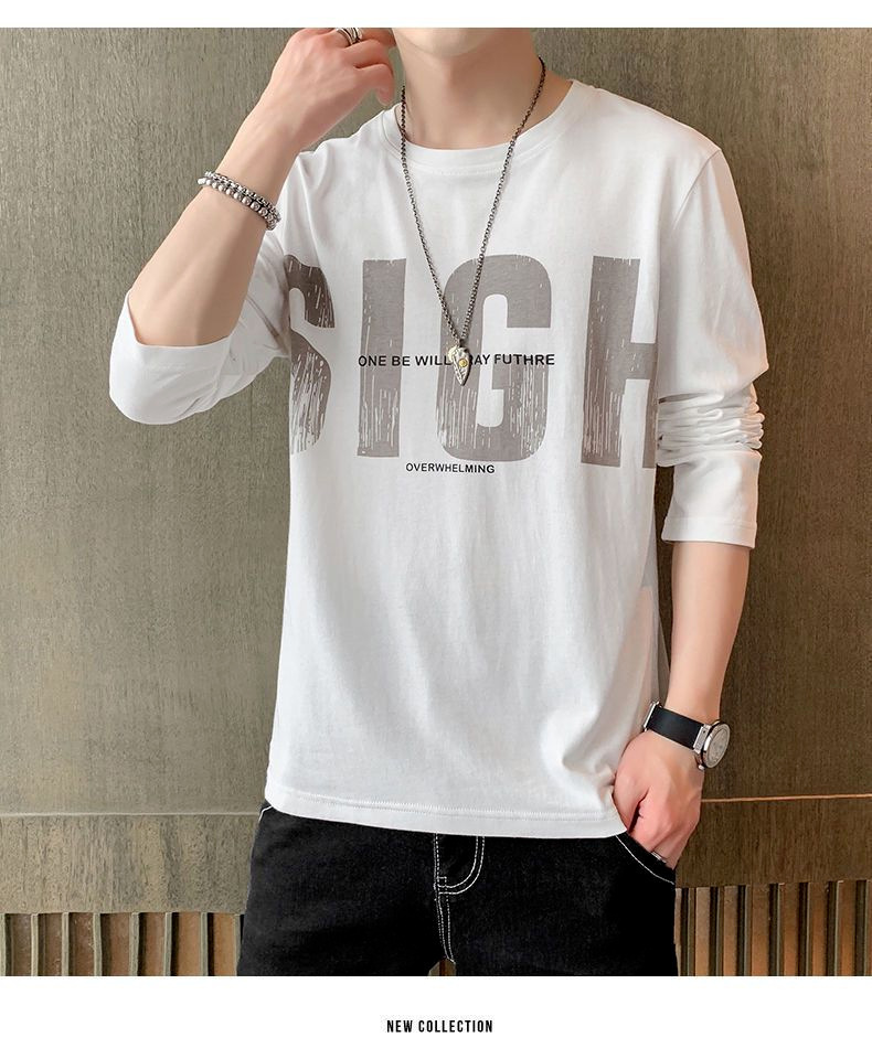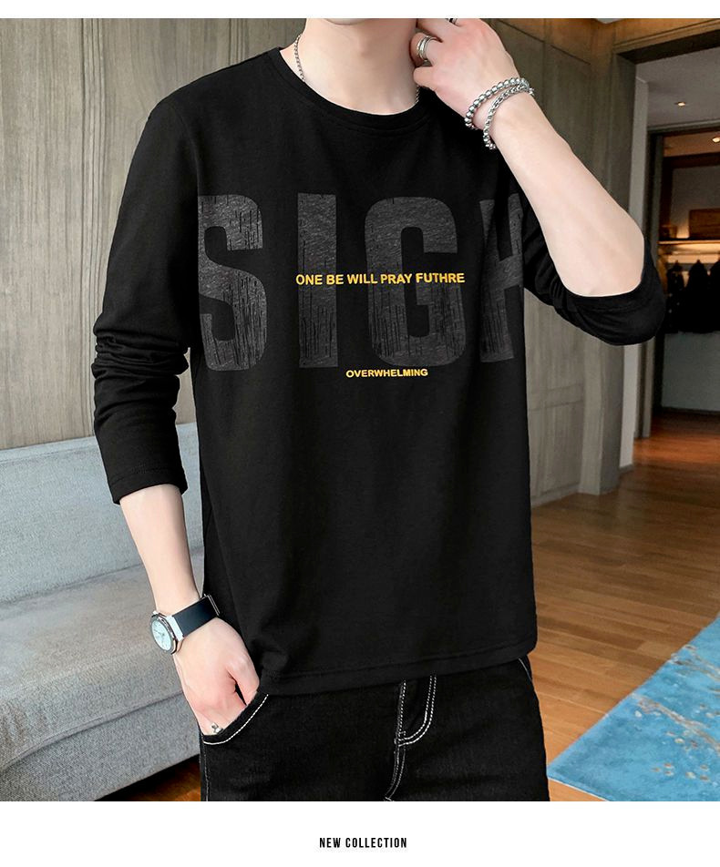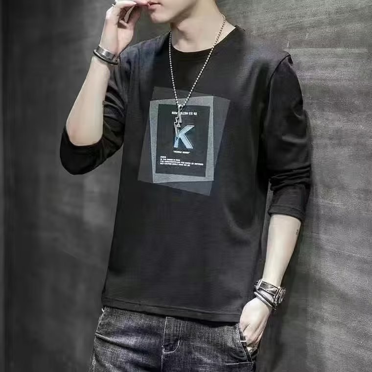 편지 긴 소매 티셔츠 바닥 셔츠 대외 무역 도매 남성 봄 얇은 한국 패션 프린트 라운드 넥 슬림 탑