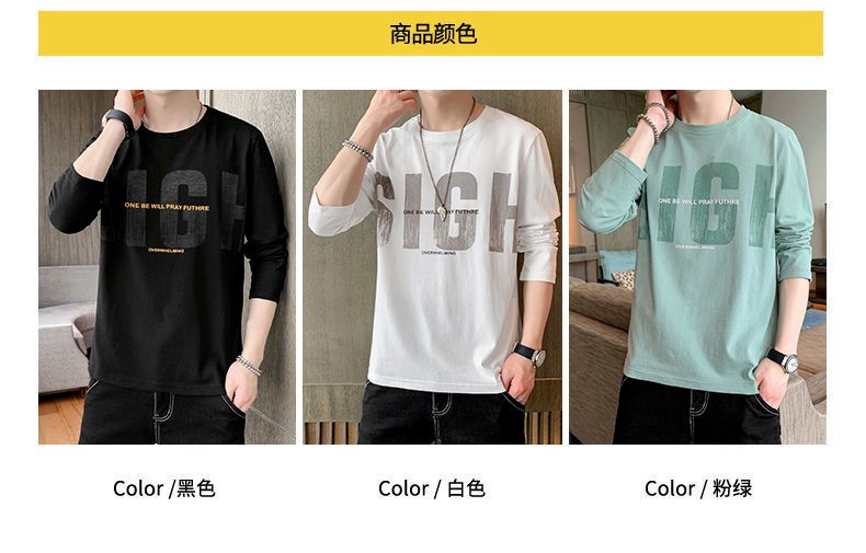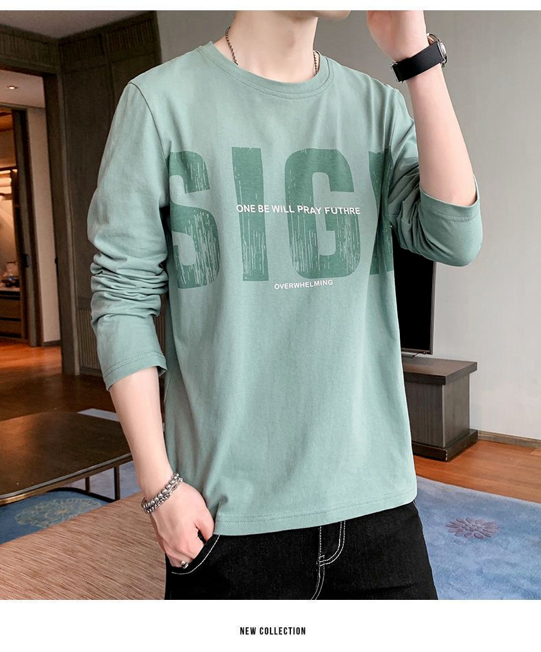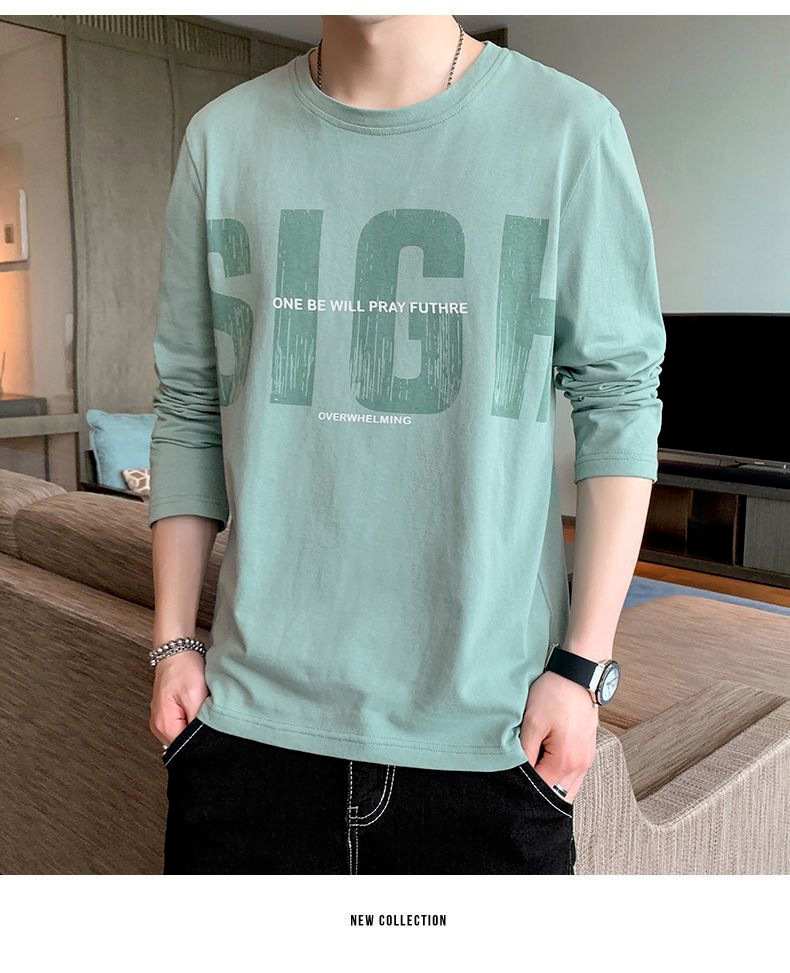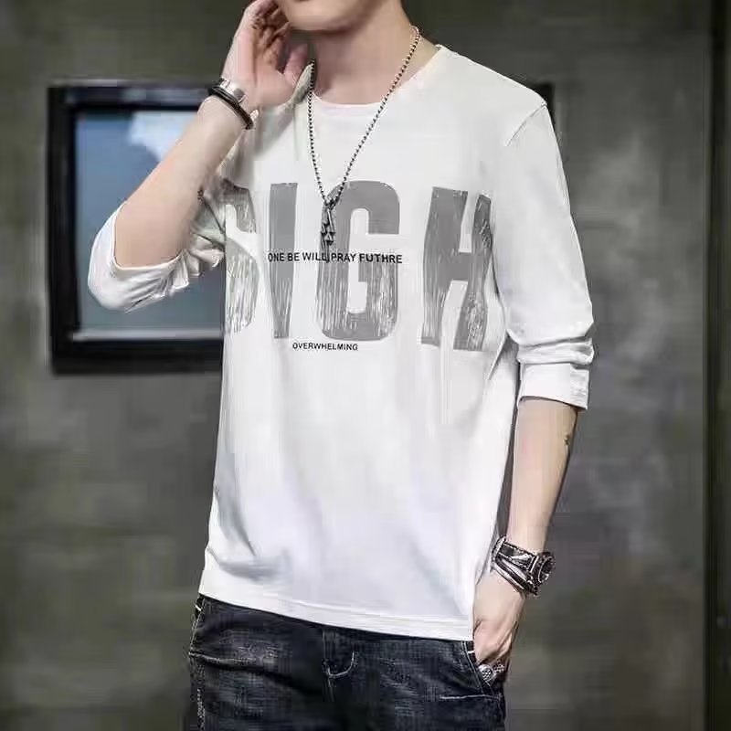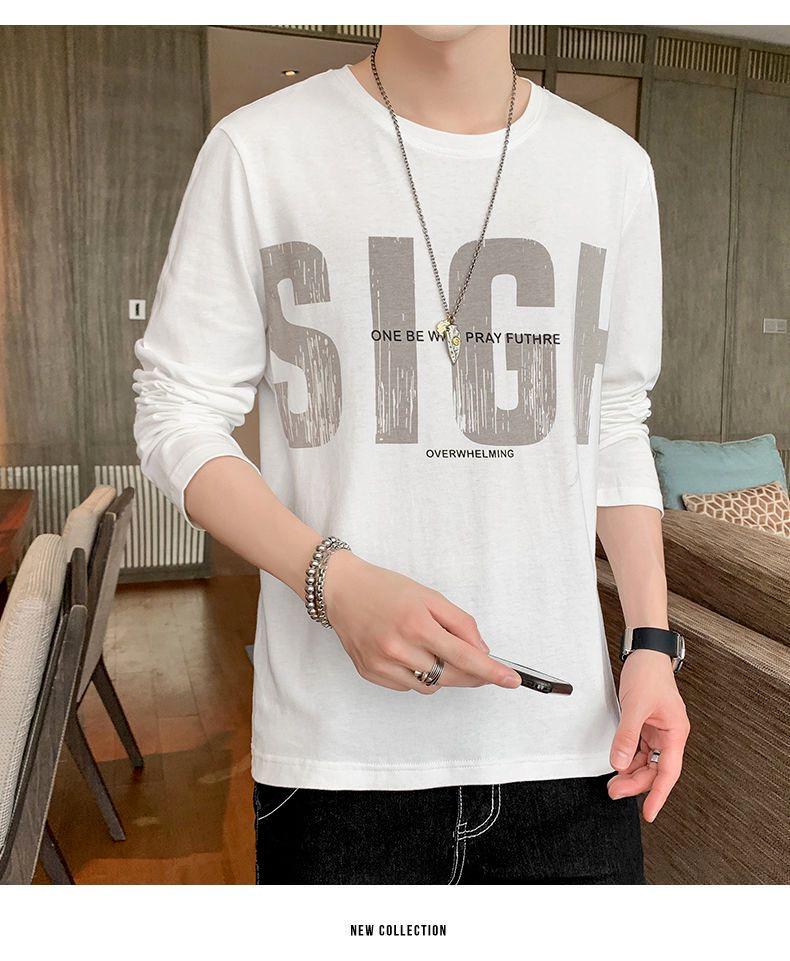 편지 긴 소매 티셔츠 바닥 셔츠 대외 무역 도매 남성 봄 얇은 한국 패션 프린트 라운드 넥 슬림 탑스토어 가기