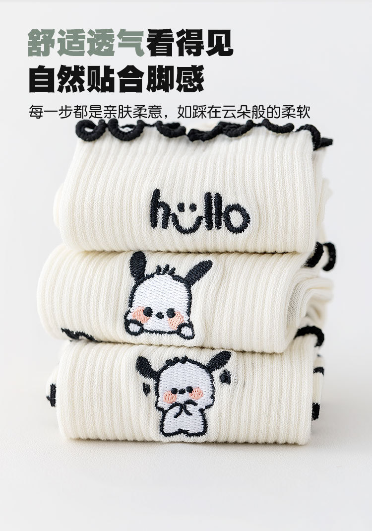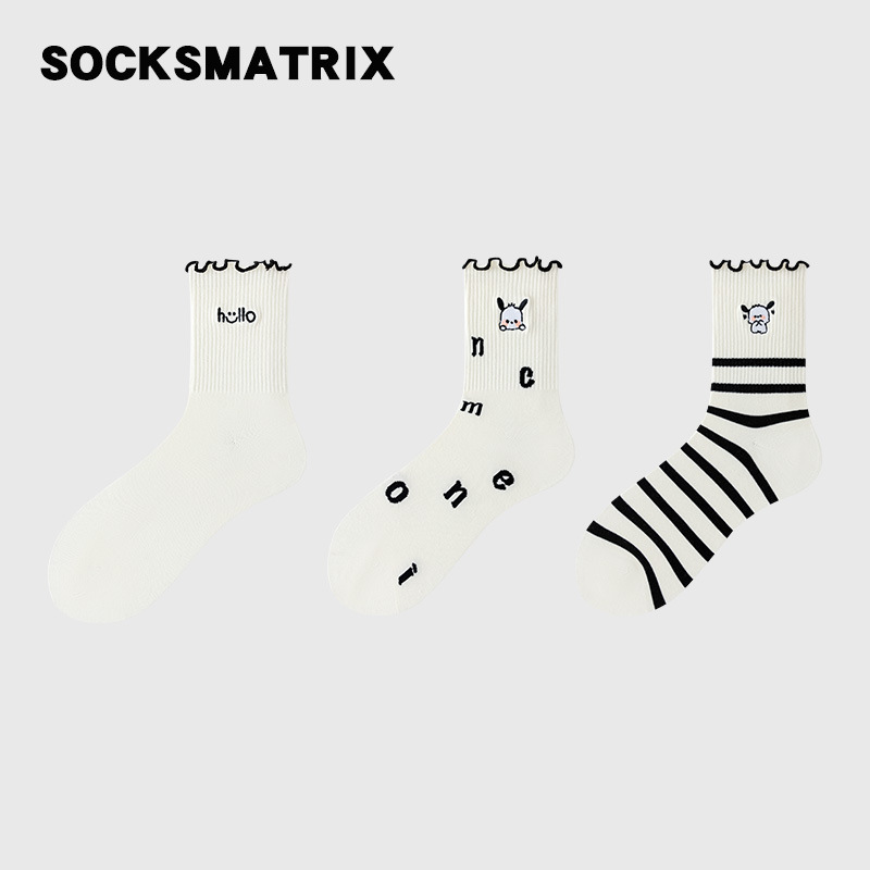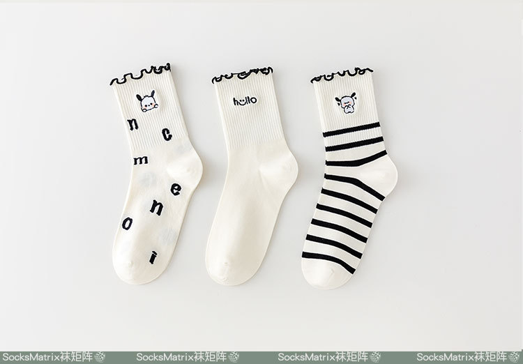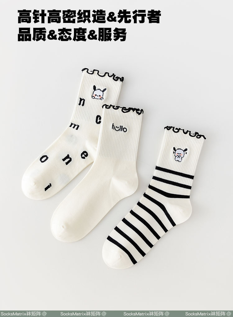 [해피퍼피] 여성용 양말 3켤레 세트 중목 양말 봄 가을 패션 캐주얼 양말 여성 도매스토어 가기