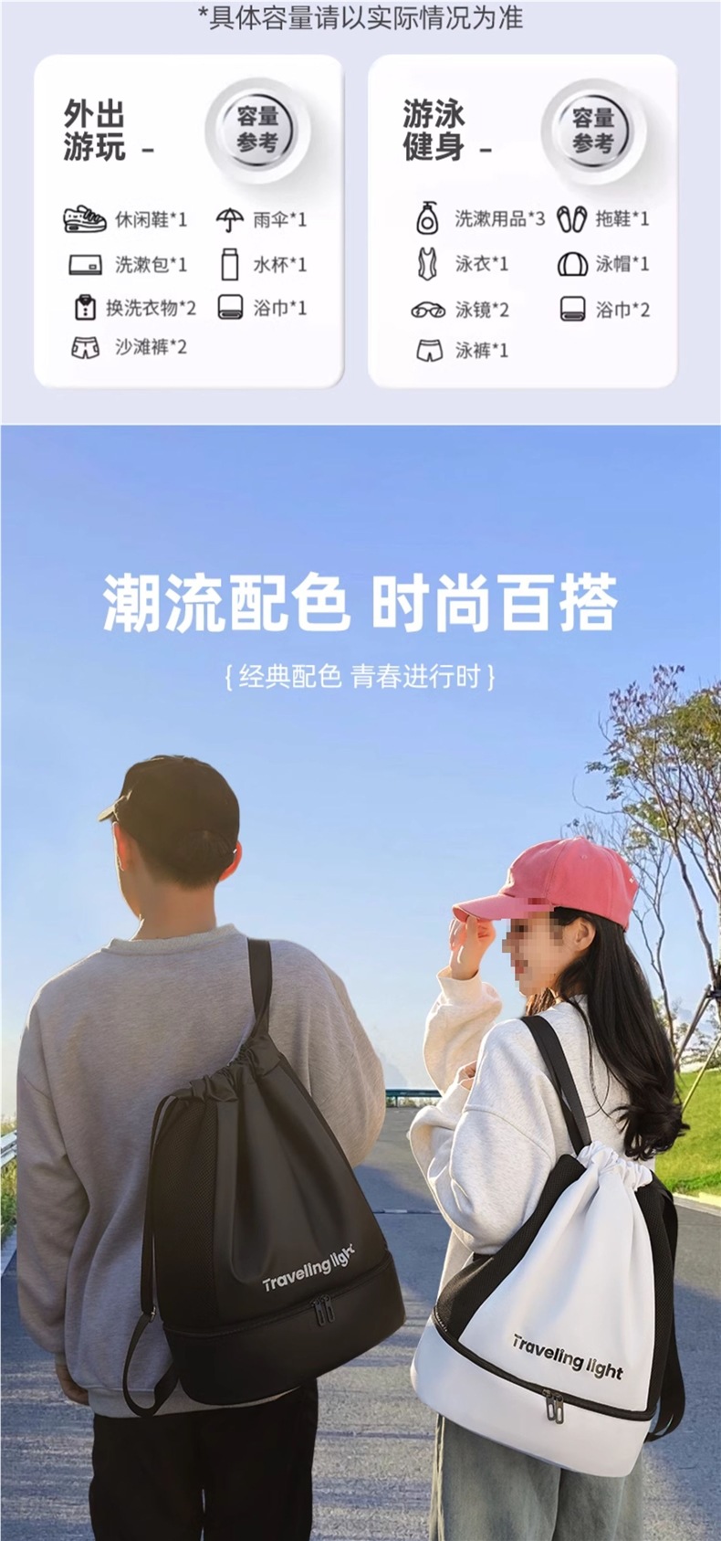 수영 가방 여성의 건조하고 젖은 분리 휴대용 수영복 보관 가방 특수 방수 가방 남성 스포츠 장비 피트니스 배낭