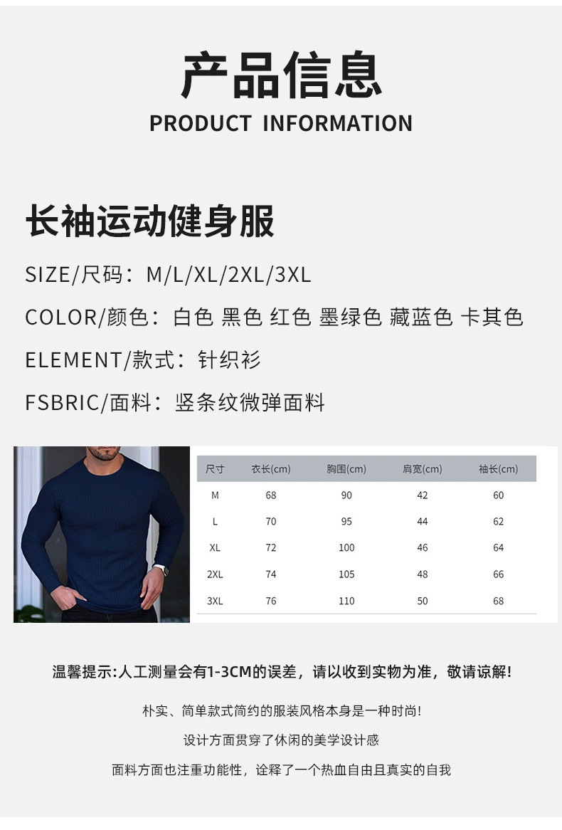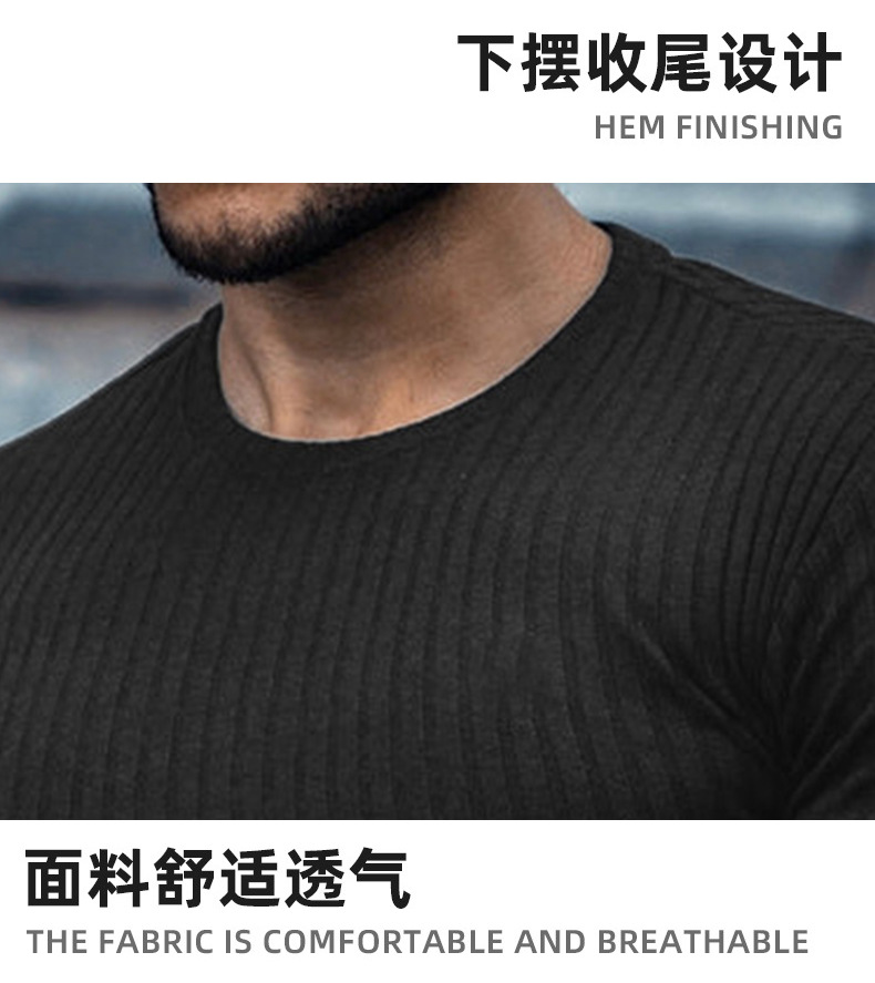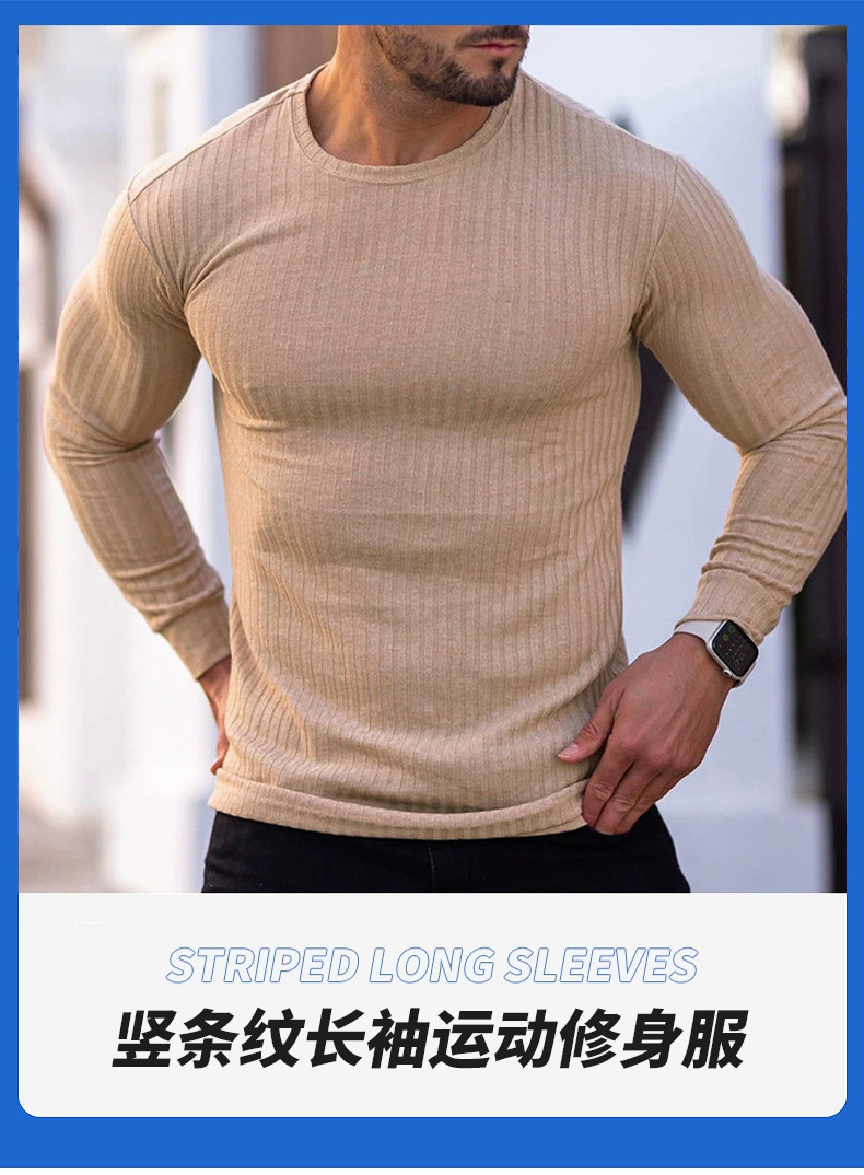 국경 간 유럽과 미국 남성의 가을 수직 줄무늬 긴팔 스포츠 피트니스 레저 슬림 훈련 의류 탄성 라운드 넥 티셔츠