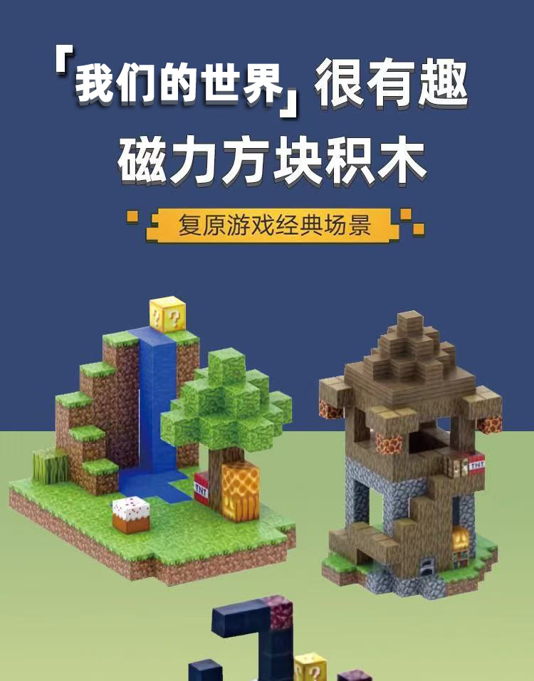 MC 내 빌딩 블록 세계 자기 광장 주변 자기 모델 어린이 자석 조립 장난감 선물 diy스토어 가기