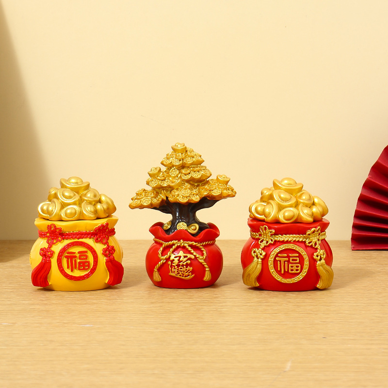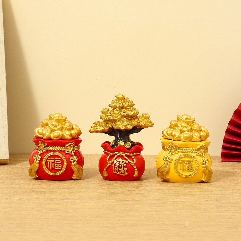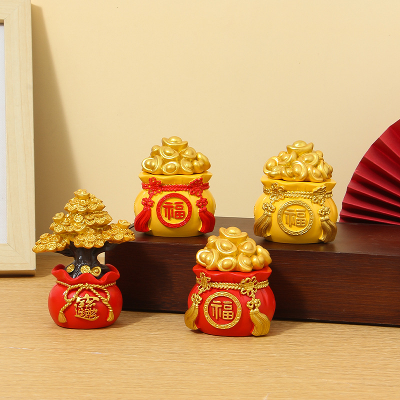 행운의 가방 수지 부의 흐름 새해 장식품 사무실 데스크탑 장식 도매 행운의 보물 상자 보석 상자