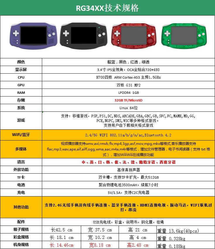 국경 간 RG34XX 오픈 소스 휴대용 무선 PSP 휴대용 레트로 GBA HD anbernic TV 게임 콘솔 1