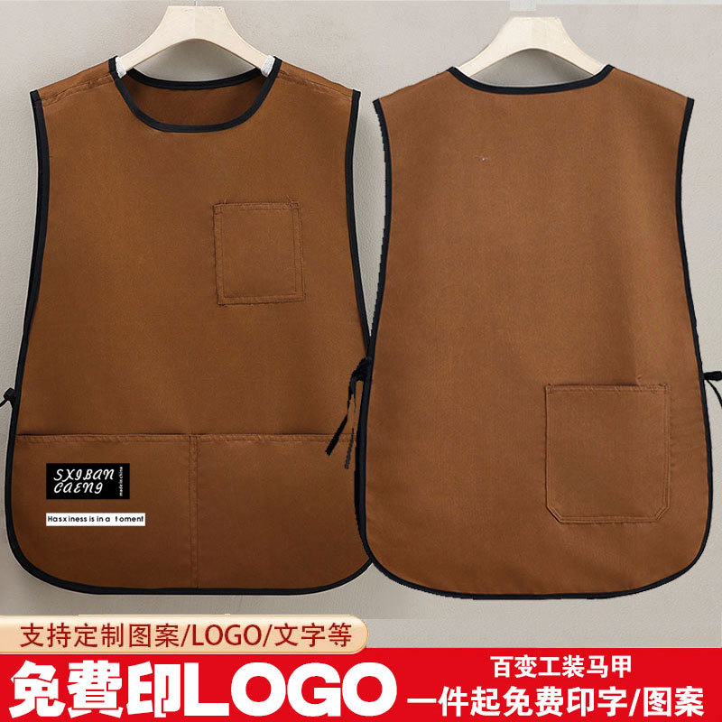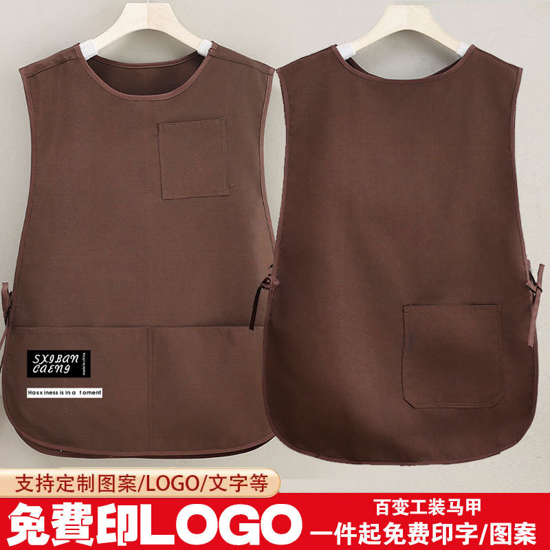 조끼 스타일 앞치마 얼룩 방지 및 더러운 방지 작업 옷 우유 차 커피 숍 가정용 주방 식사 특수 조끼 인쇄