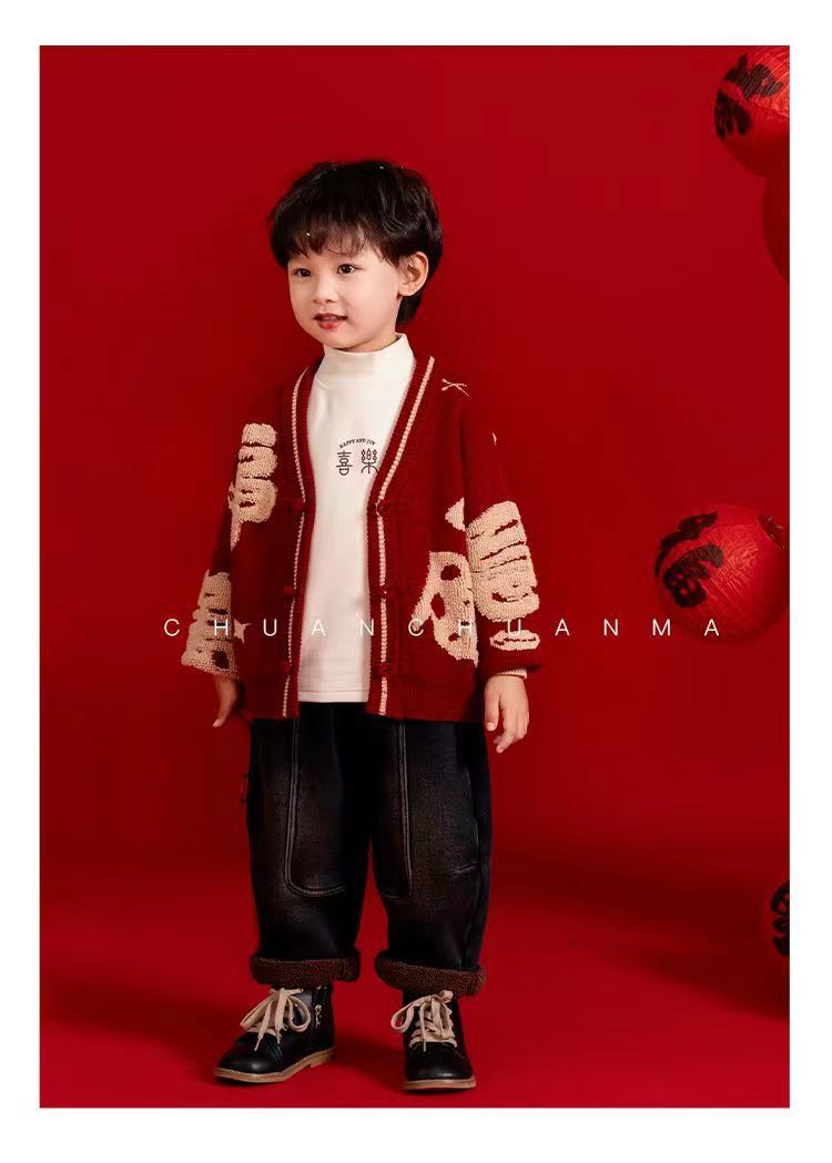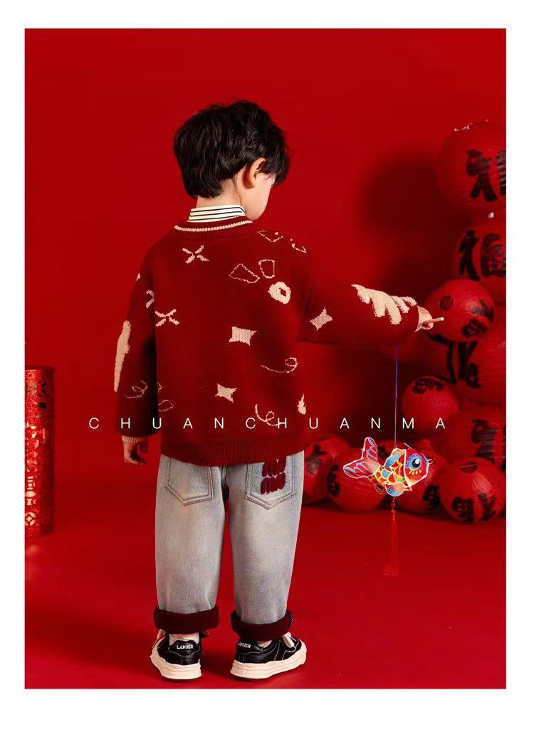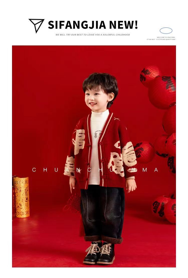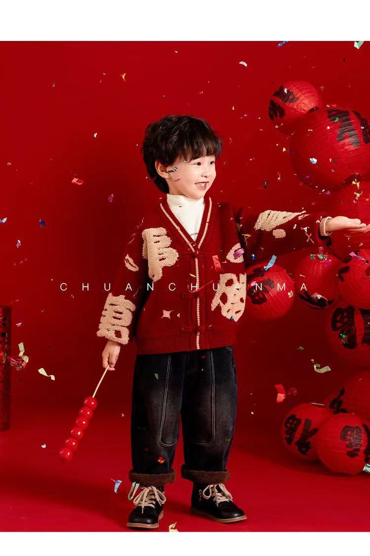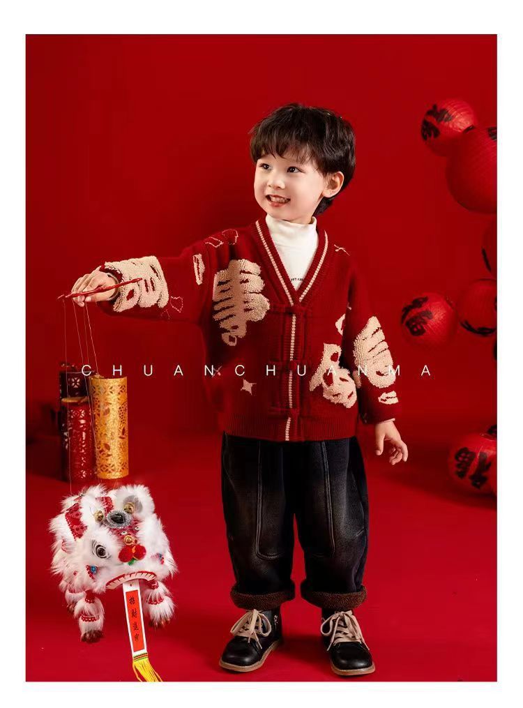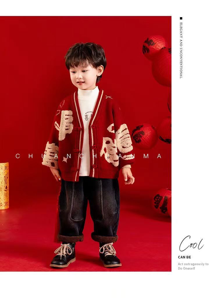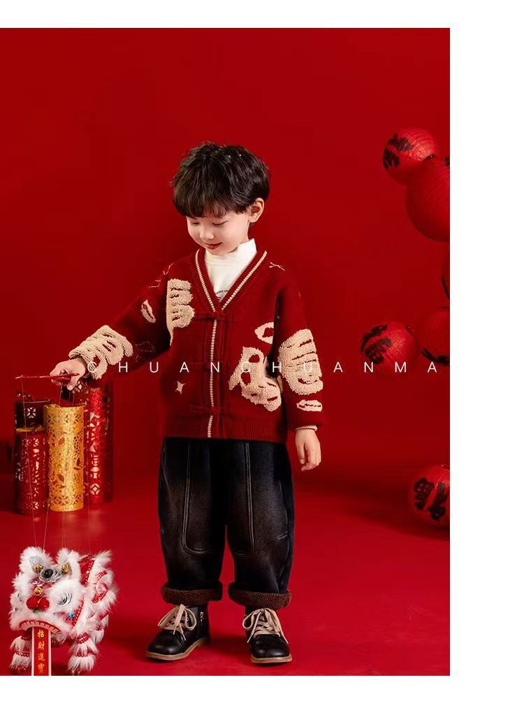 [폭발] 안코라 레드크리스마스보이즈 '새 중국 패션 카디건 스웨터 보이즈' 신년 옷 패션