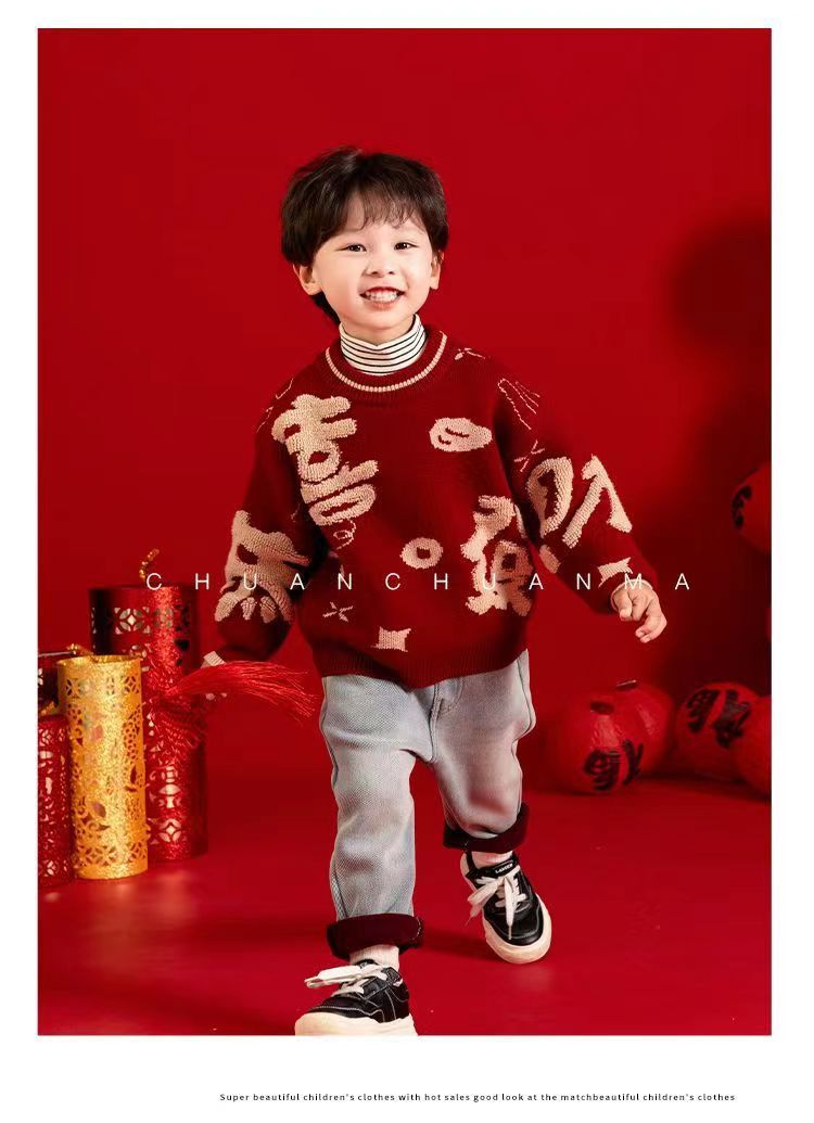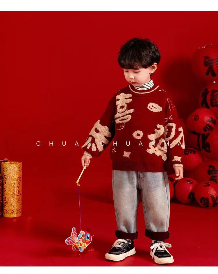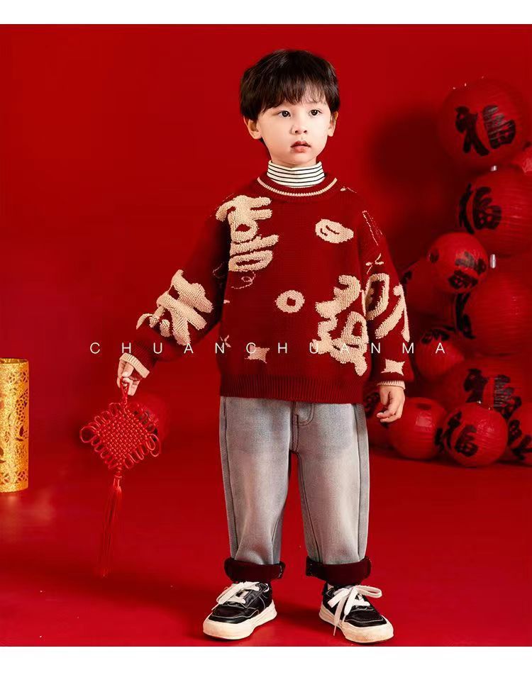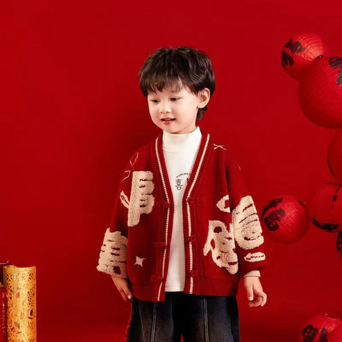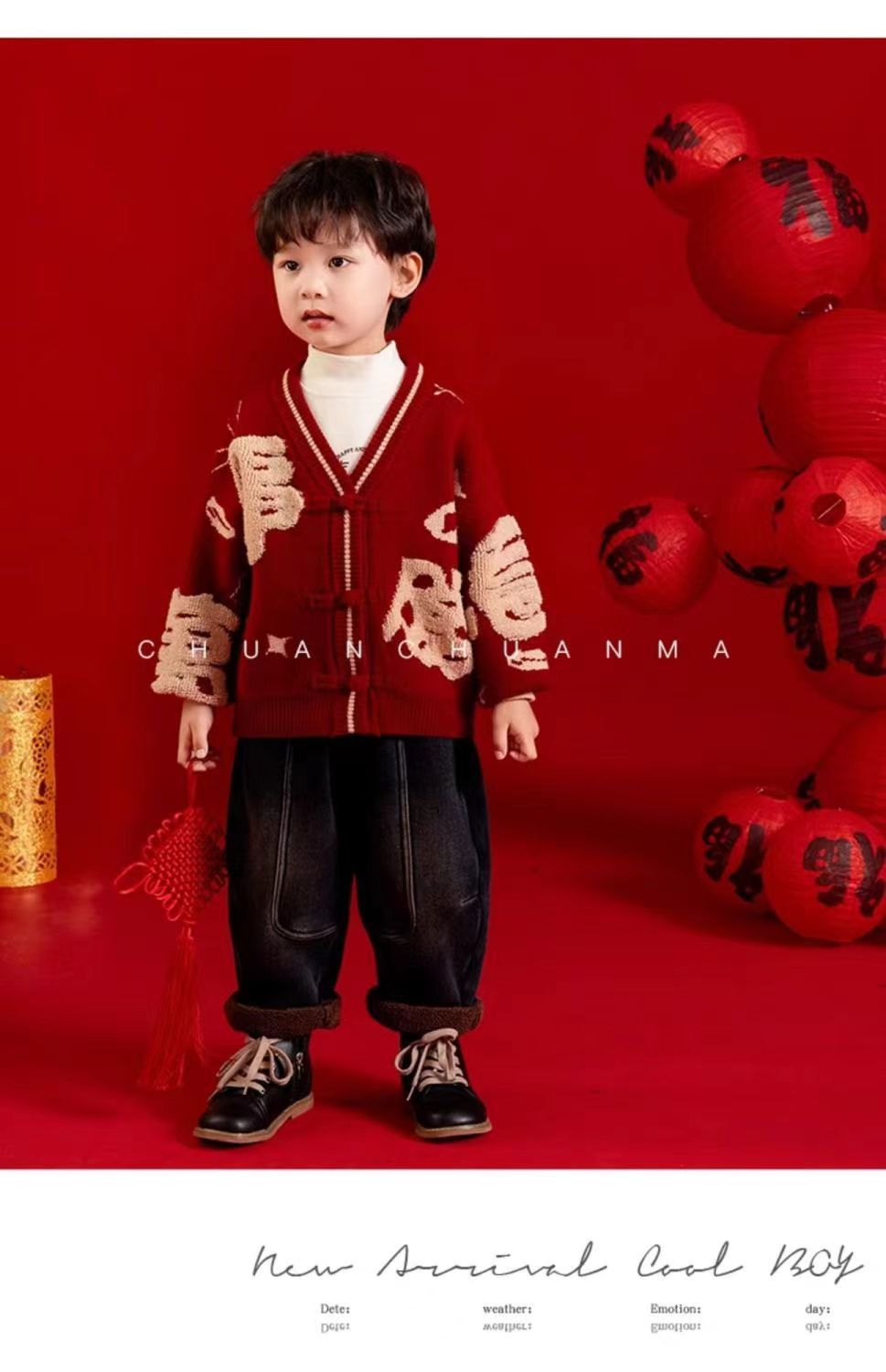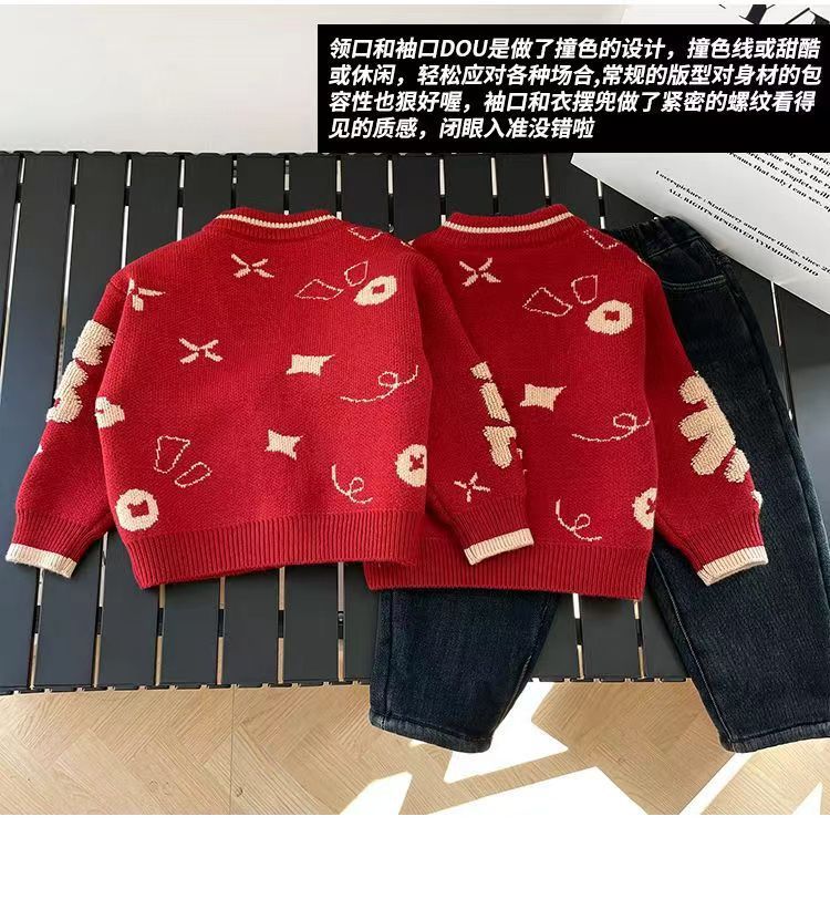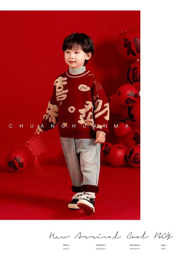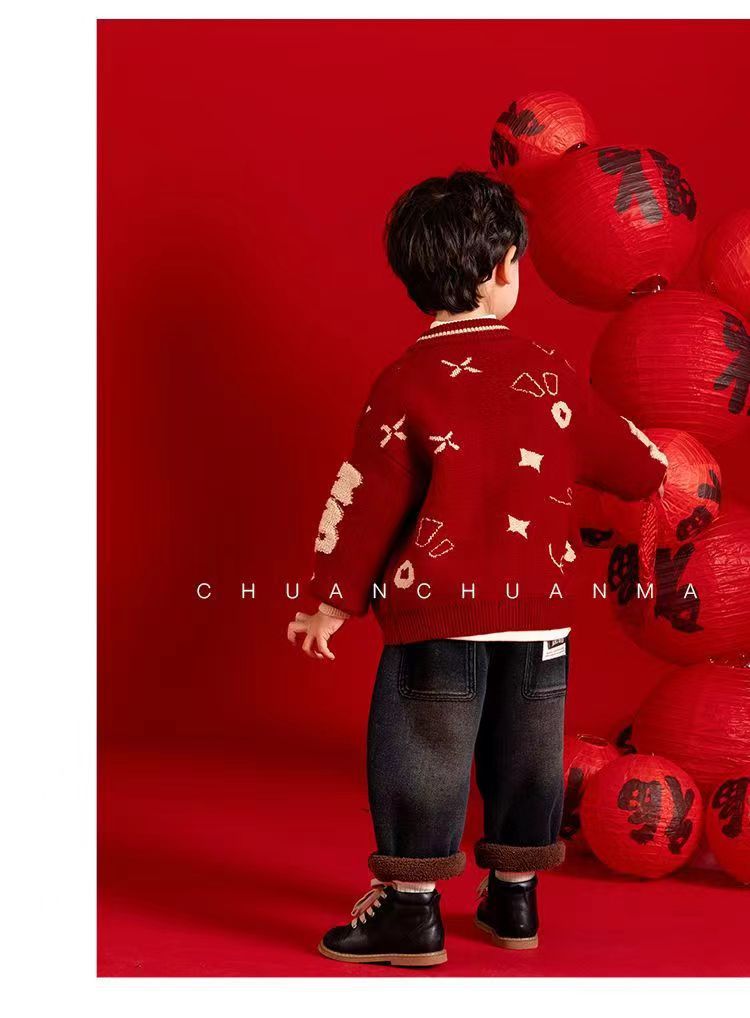 [폭발] 안코라 레드크리스마스보이즈 '새 중국 패션 카디건 스웨터 보이즈' 신년 옷 패션
