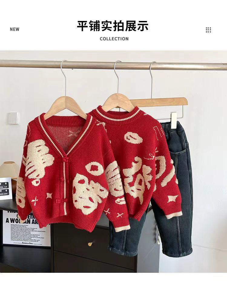 [폭발] 안코라 레드크리스마스보이즈 '새 중국 패션 카디건 스웨터 보이즈' 신년 옷 패션스토어 가기