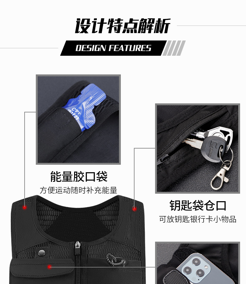 경량 스포츠 백팩, 통기성 방수 아웃도어 피트니스 장비, 하이킹 러닝 휴대폰 조끼 가방 도매스토어 가기