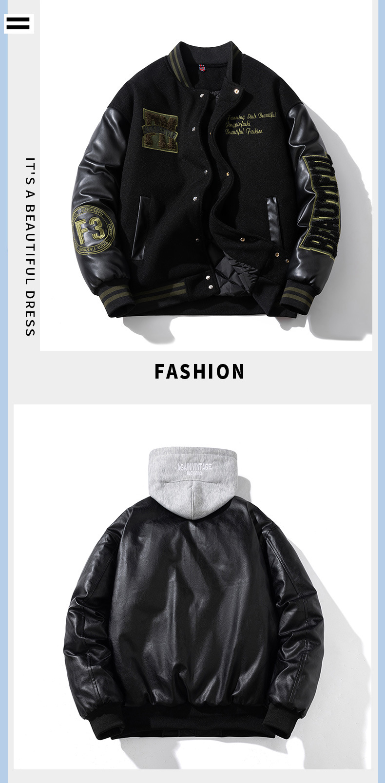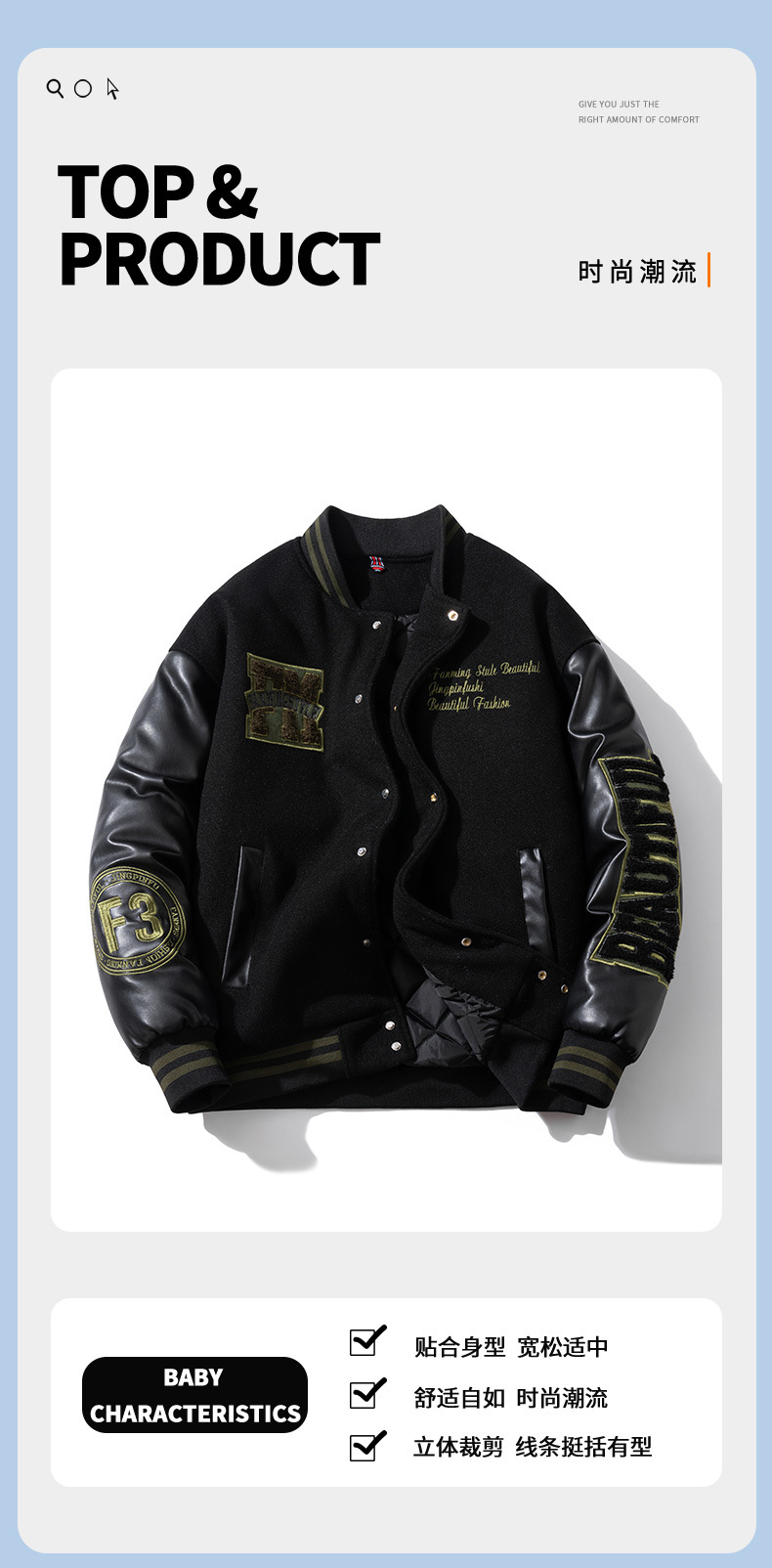 2025 새로운 PU 가죽 오토바이 재킷 남자의 가을과 겨울 퀼트 야구 세트 중공업 자수 트렌디 브랜드 플라잉 세트 재킷스토어 가기