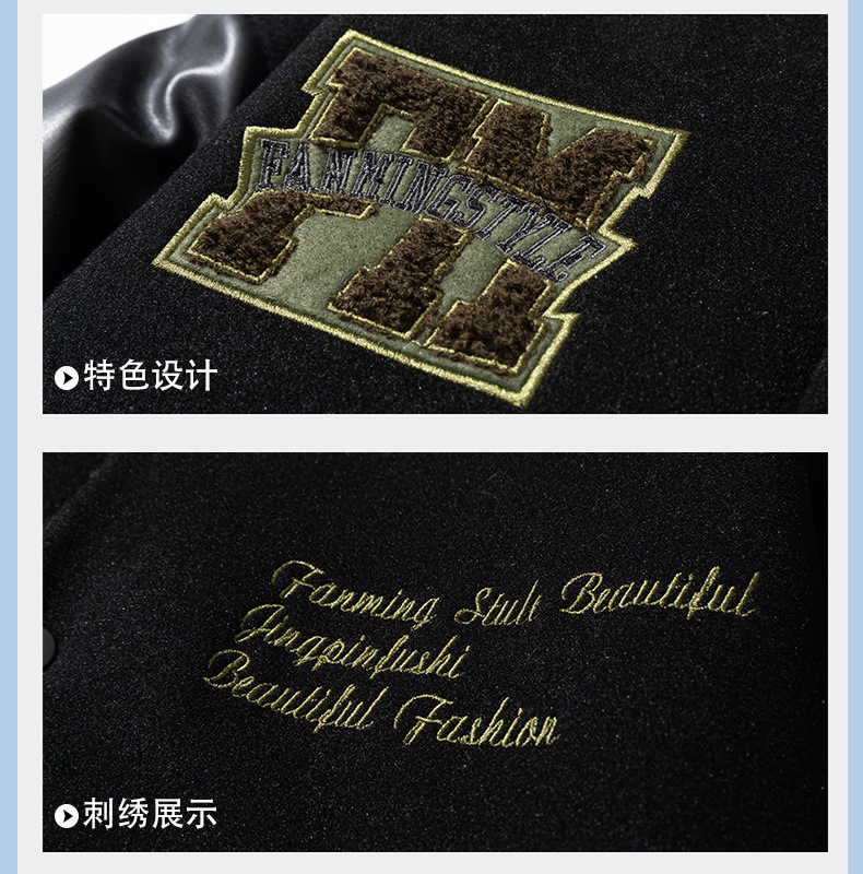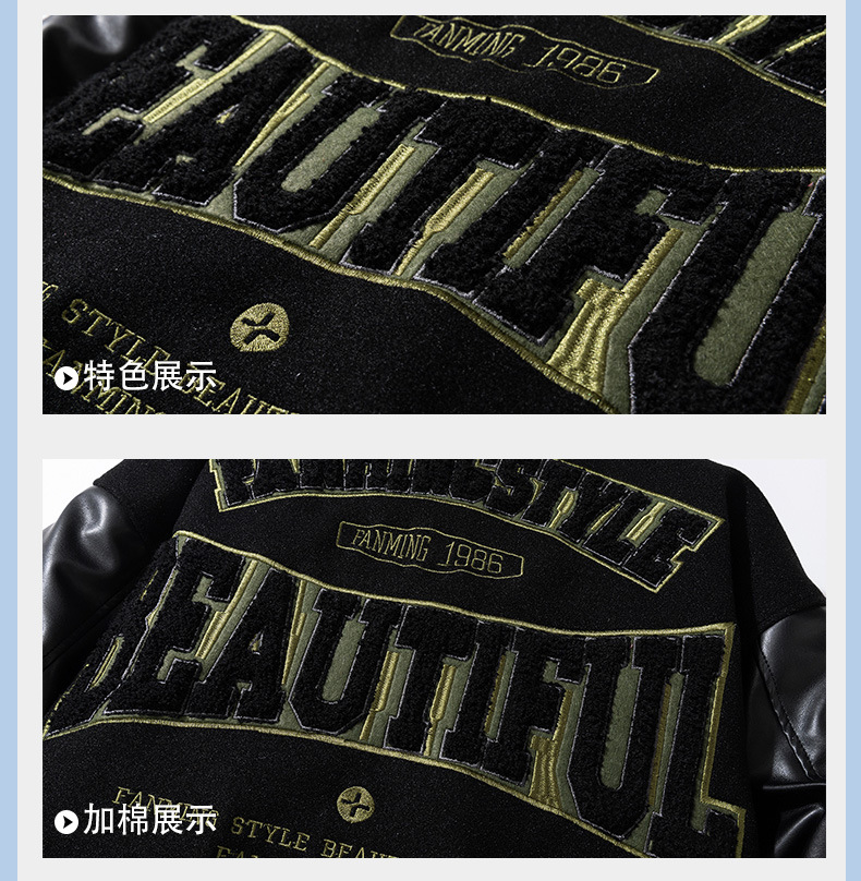 2025 새로운 PU 가죽 오토바이 재킷 남자의 가을과 겨울 퀼트 야구 세트 중공업 자수 트렌디 브랜드 플라잉 세트 재킷
