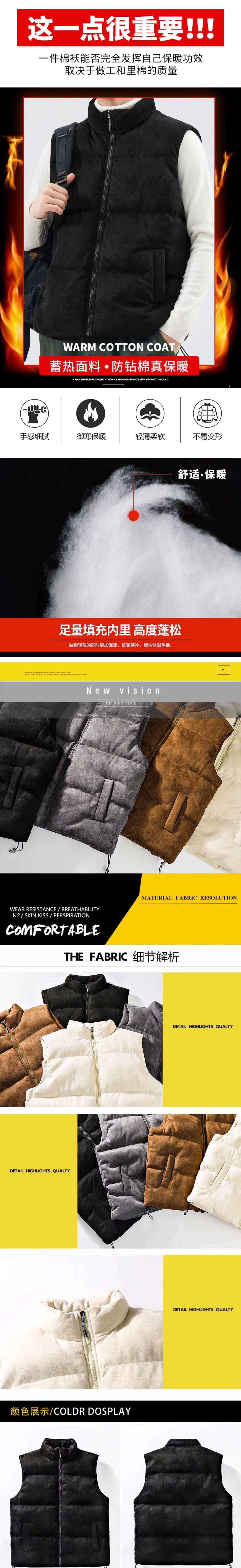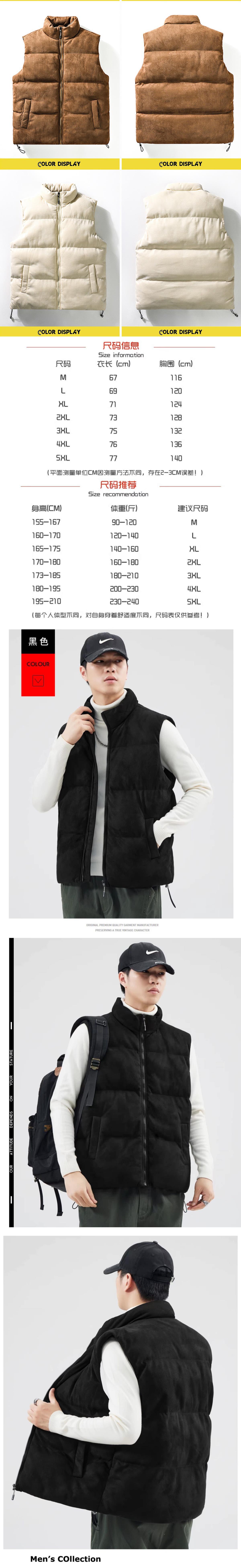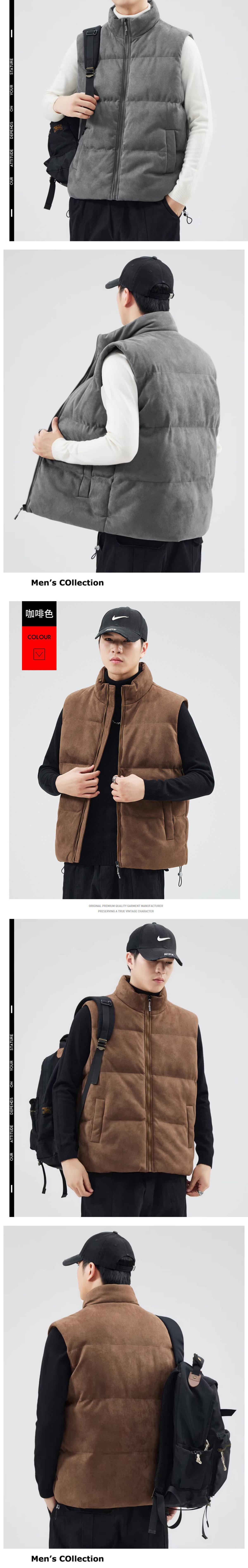 가을 겨울 스웨이드 조끼 남성용 두꺼운 트렌디 브랜드 조끼 가을 겨울 외출용 따뜻한 다운 코튼 조끼 재킷스토어 가기