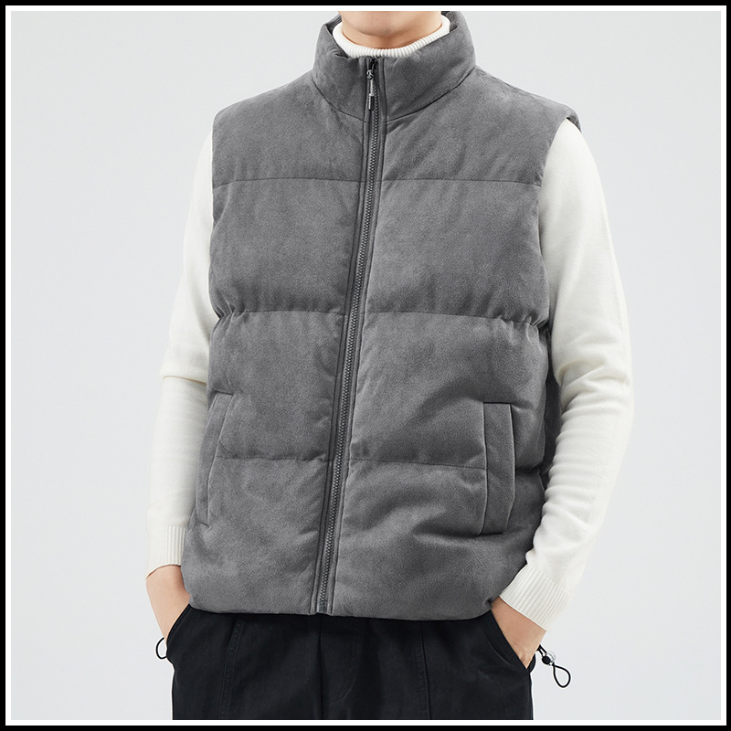 가을 겨울 스웨이드 조끼 남성용 두꺼운 트렌디 브랜드 조끼 가을 겨울 외출용 따뜻한 다운 코튼 조끼 재킷