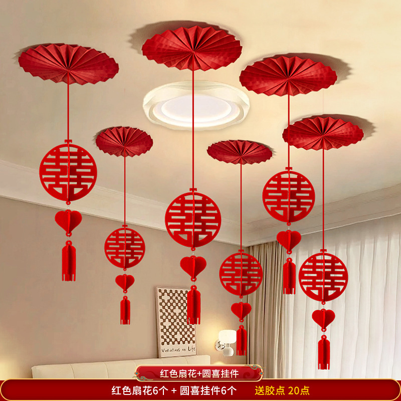 • 빨간색 입체 종이 부채 꽃 6개 + 몰려든 입체 인터넷 연예인 위안시 펜던트 6개