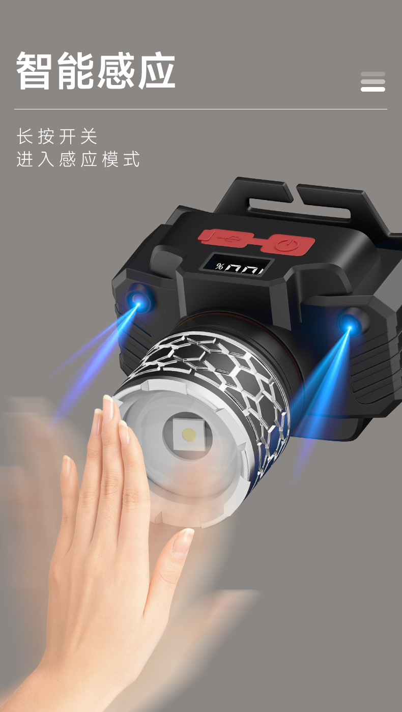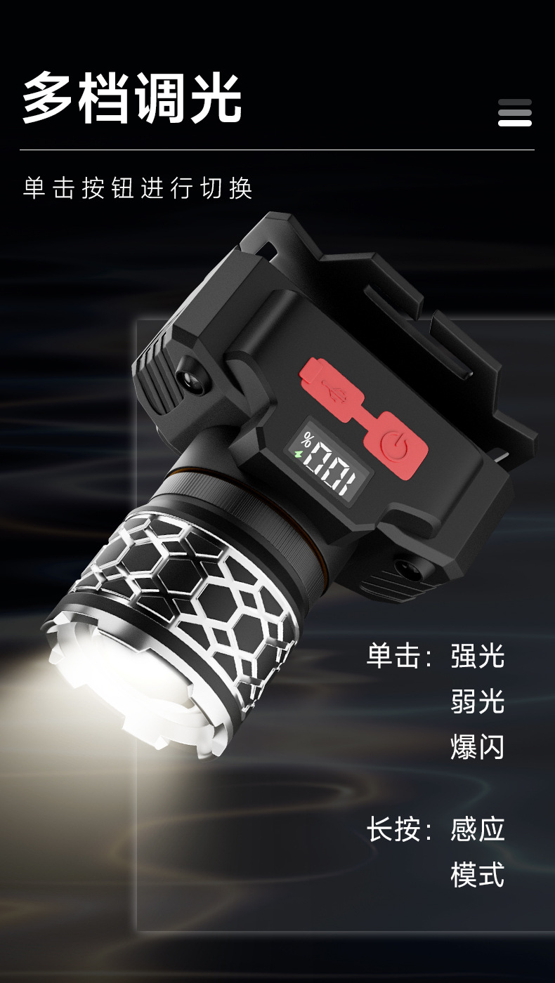 헤드램프 충전식 야외 낚시 전용 조절 가능한 조명 센서 야간 낚시 손전등 고출력 헤드램프스토어 가기