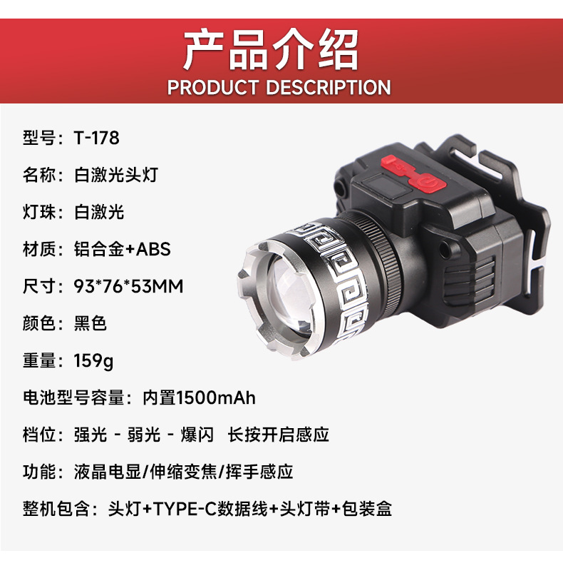 • T178(데이터 케이블 + 헤드라이트 스트랩 + 포장 상자)
