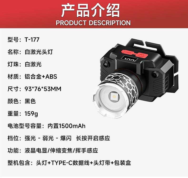 • T177(데이터 케이블 + 헤드라이트 스트랩 + 포장 상자)