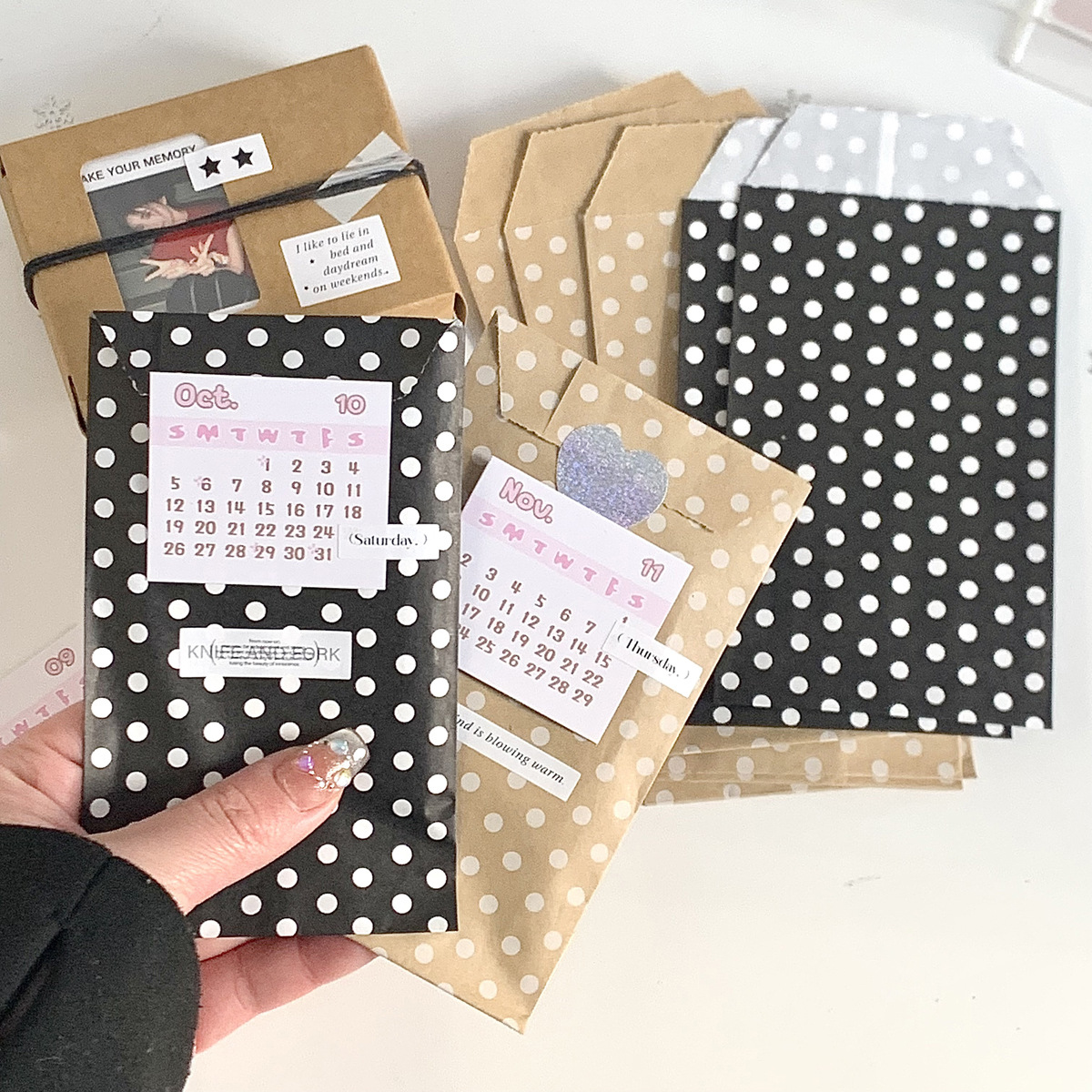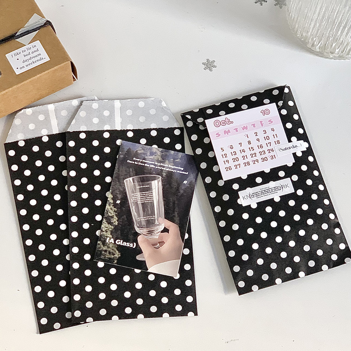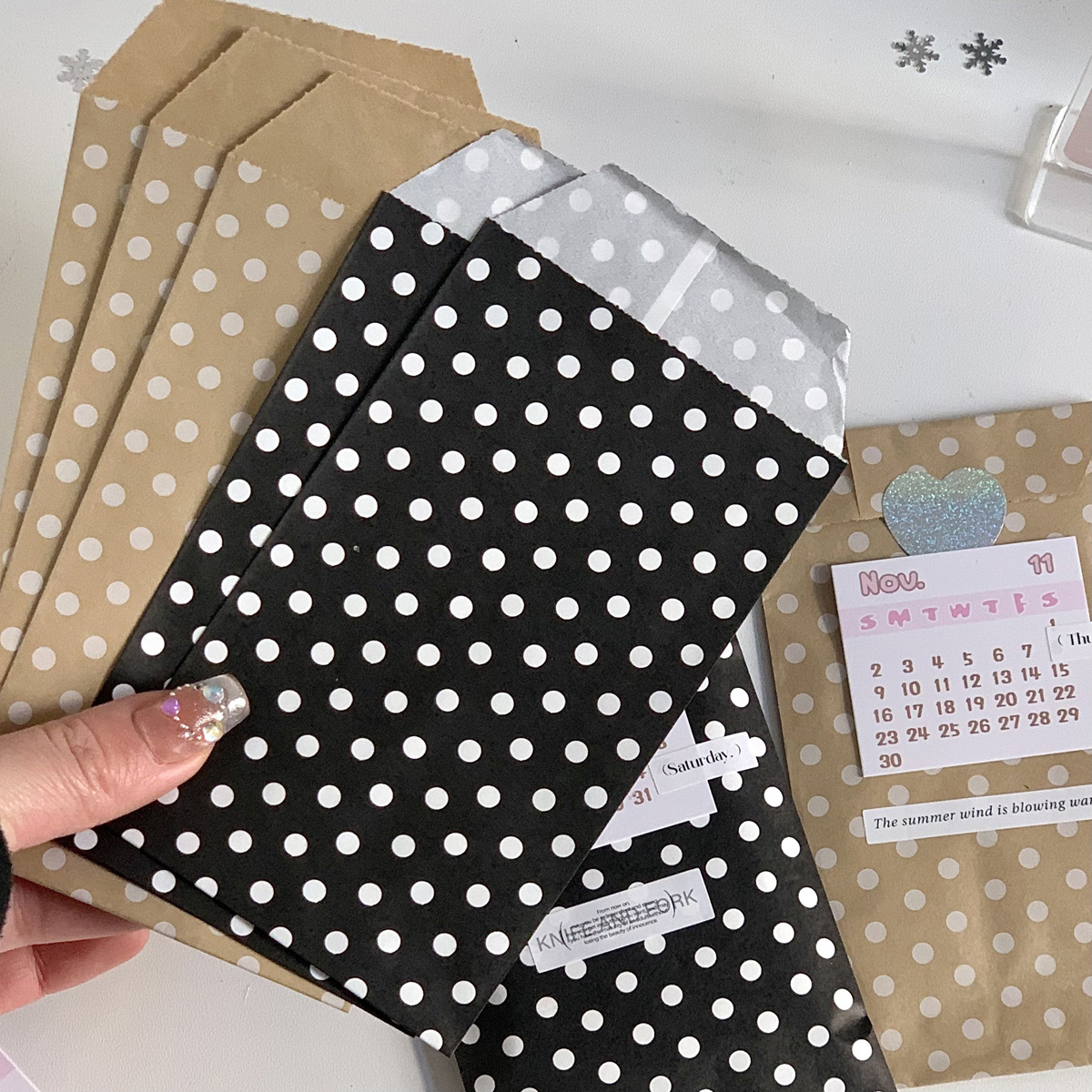 높은 가치의 검은 물방울 무늬 크래프트 종이 가방 카드 아웃 작은 카드 포장 가방 스타일 선물 포장 가방