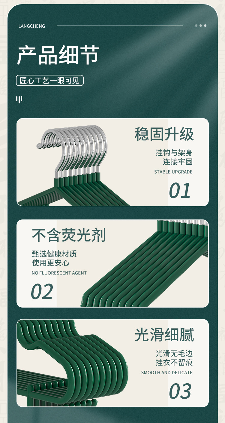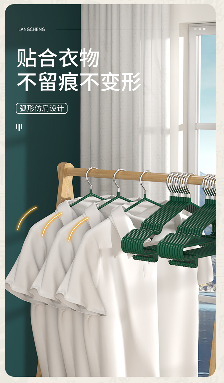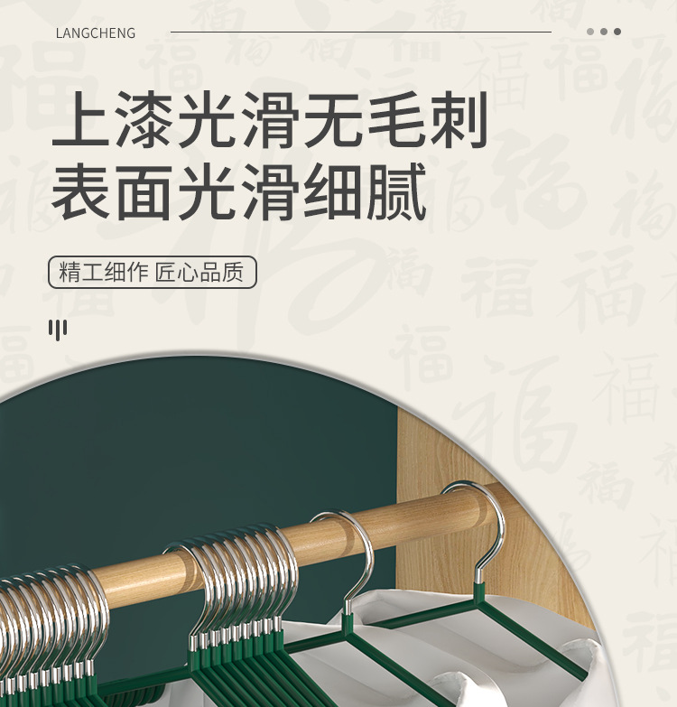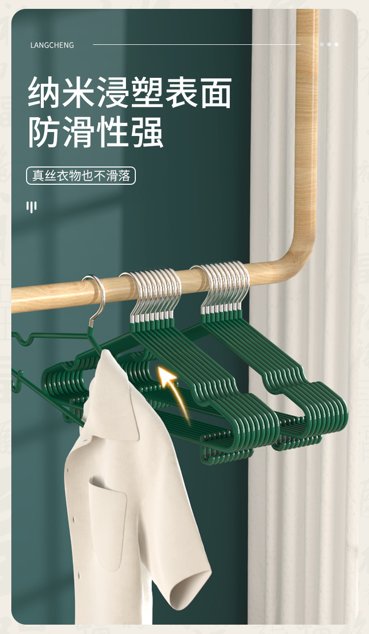 • 【40CM】미끄럼 방지 옷걸이 라이트 럭셔리 그린-[1팩]