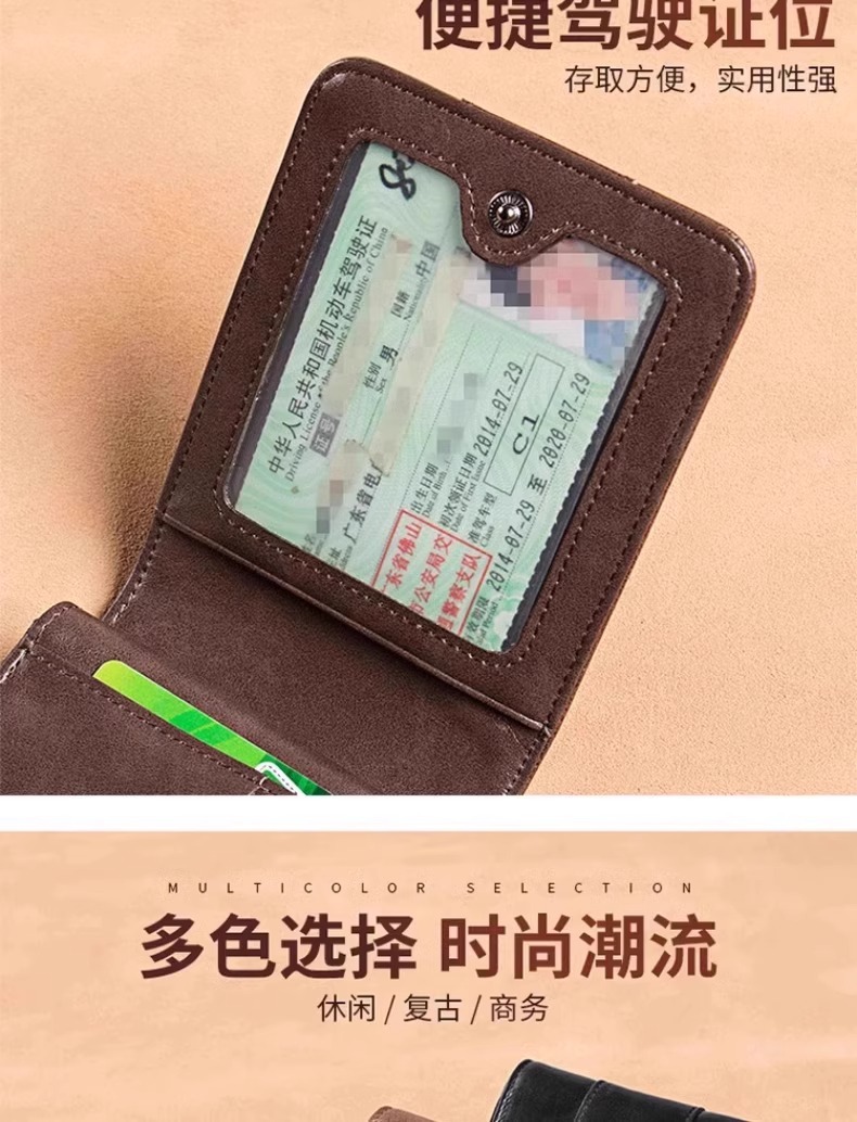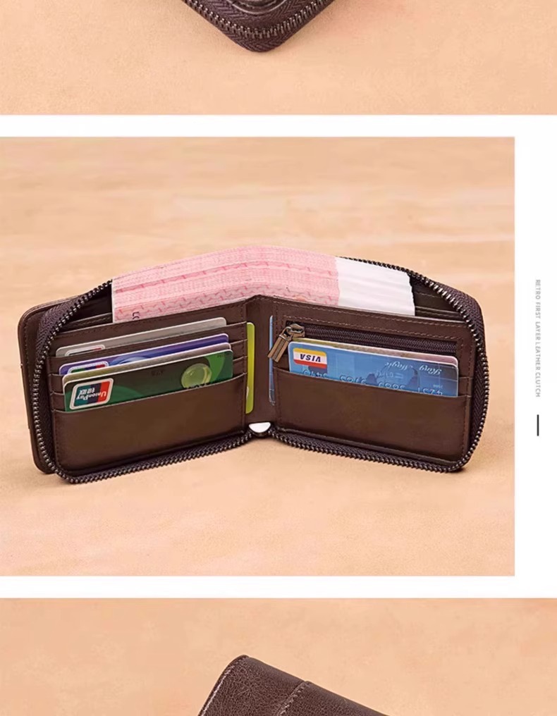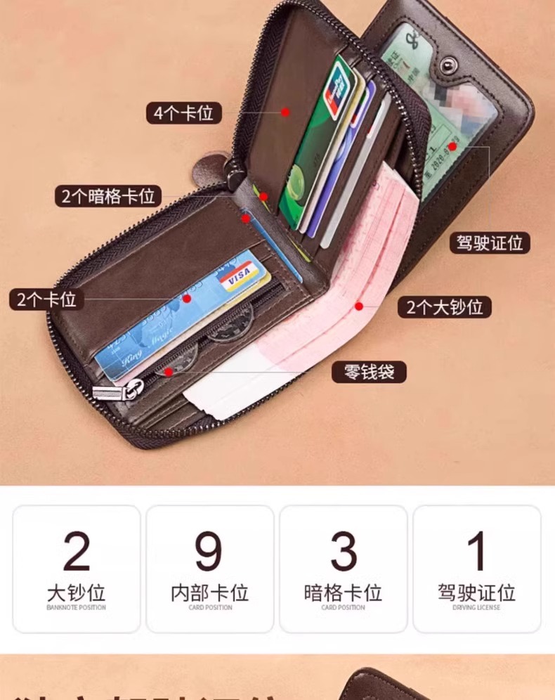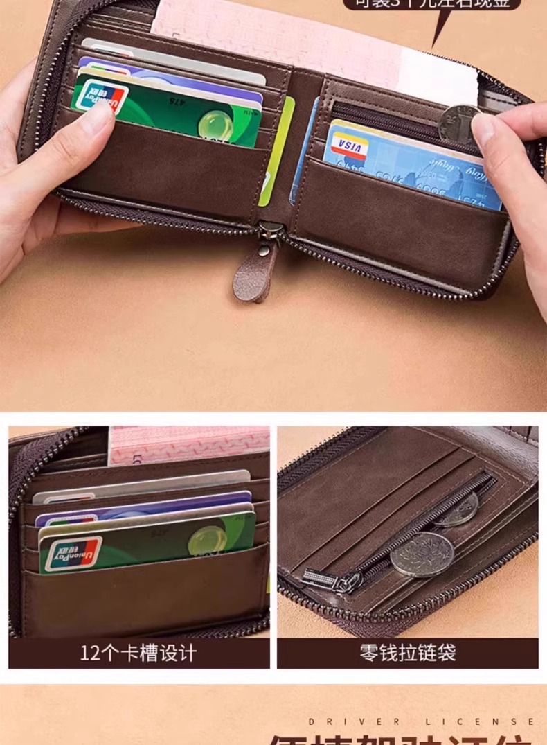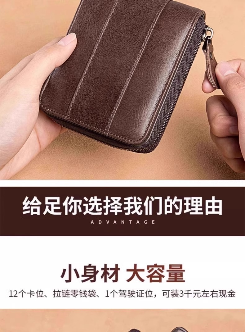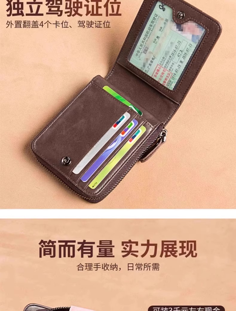지갑 남자의 짧은 정품 가죽 2024 새로운 대용량 지퍼 운전사의 면허 카드 홀더 지갑 지갑스토어 가기