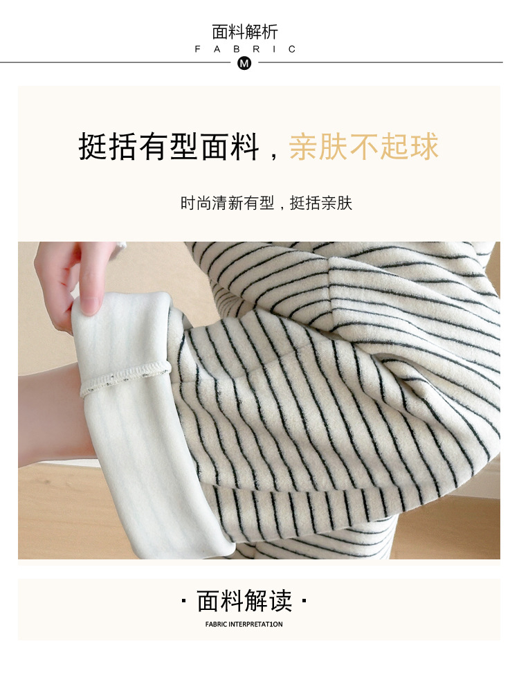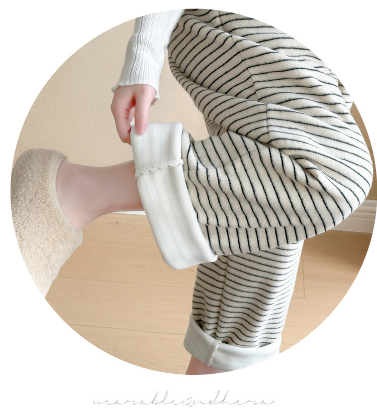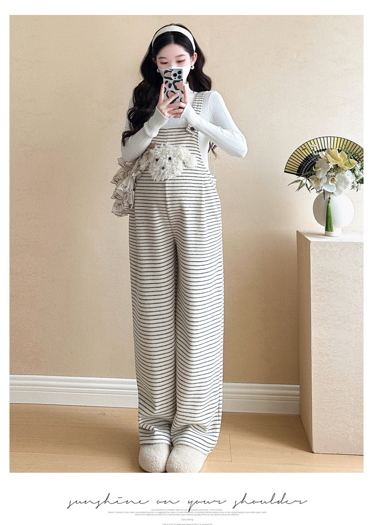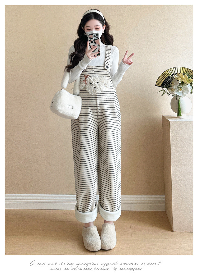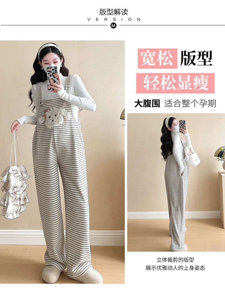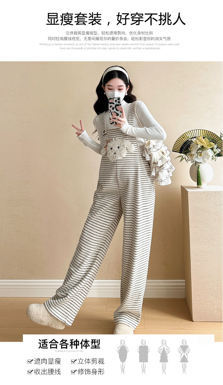 임산부 의류 멜빵 가을과 겨울 새 기모 두꺼운 줄무늬 플러스 사이즈 임산부 바지 맨 위 달콤한 세트