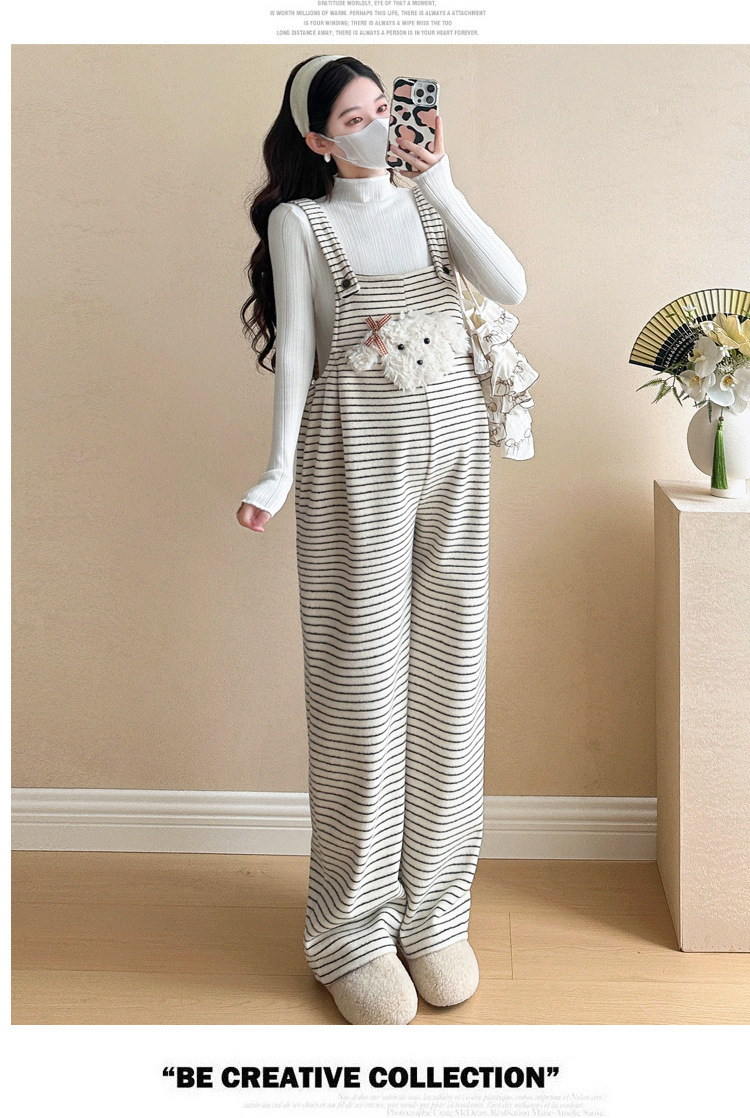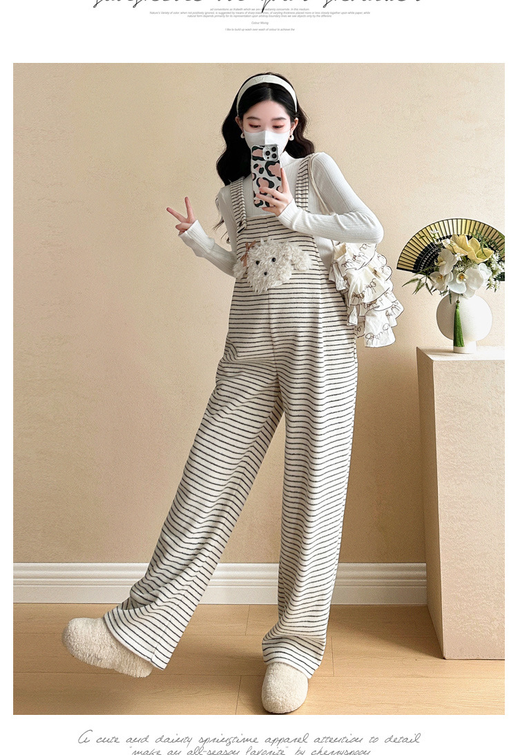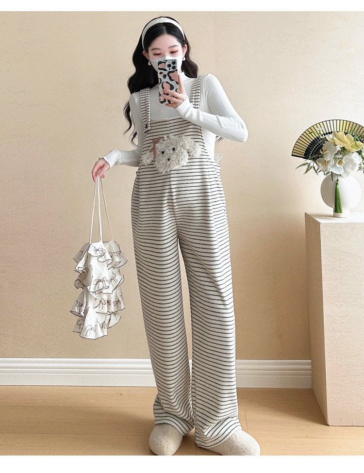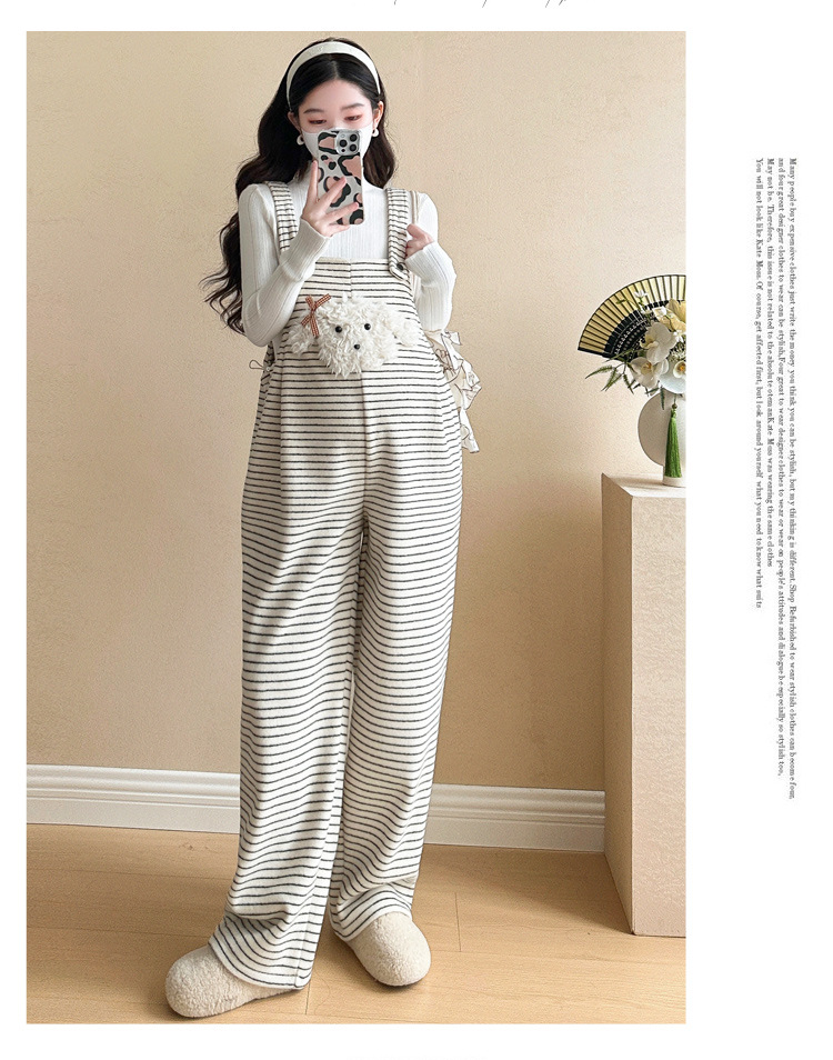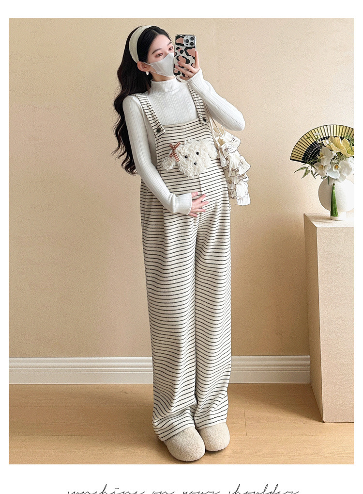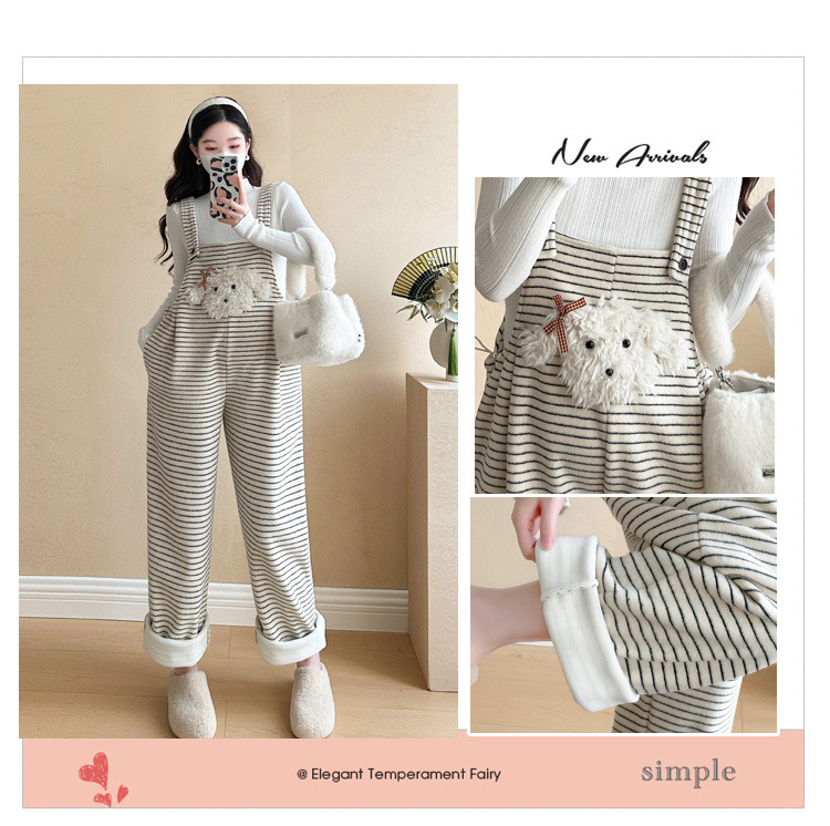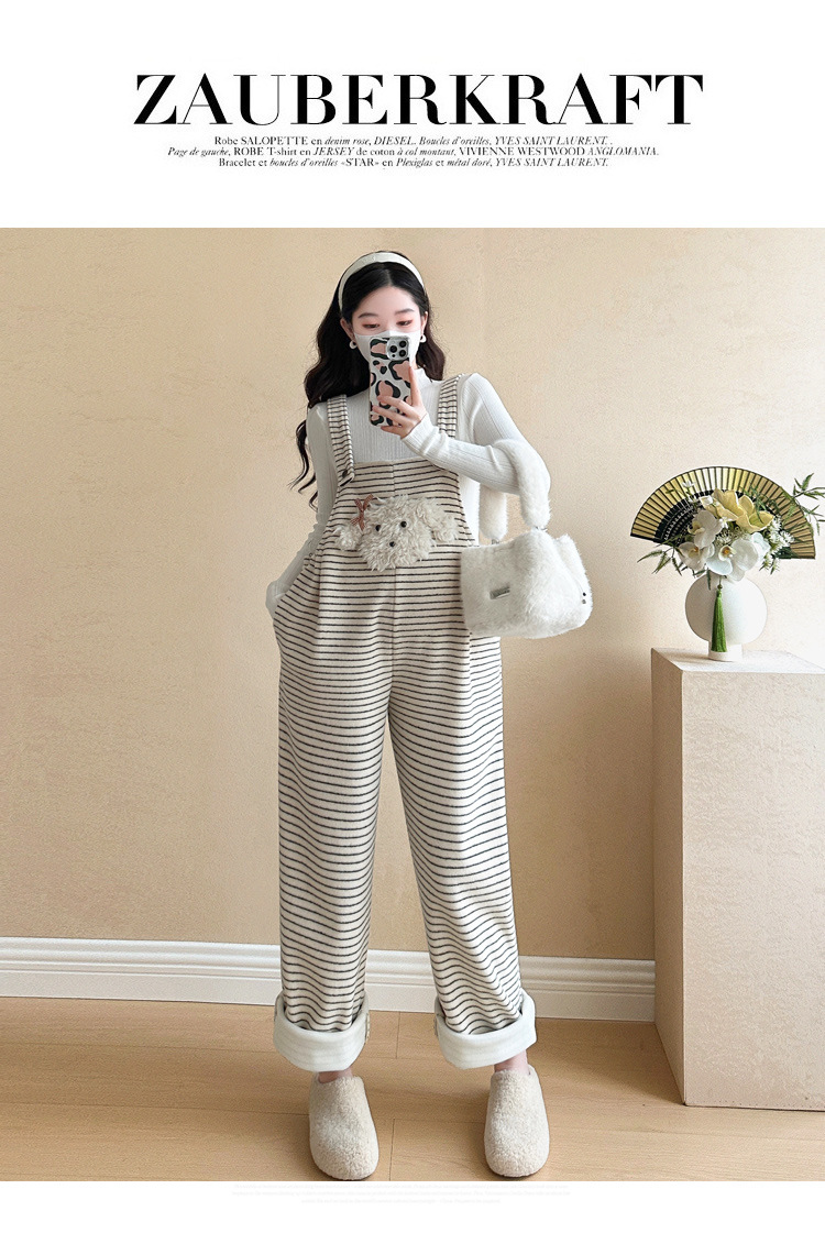 임산부 의류 멜빵 가을과 겨울 새 기모 두꺼운 줄무늬 플러스 사이즈 임산부 바지 맨 위 달콤한 세트스토어 가기