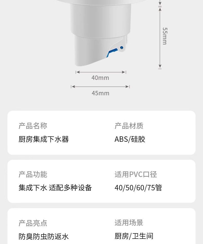 • 클래식●냄새 방지 밀봉 플러그(40/50/60/75 파이프용 범용)