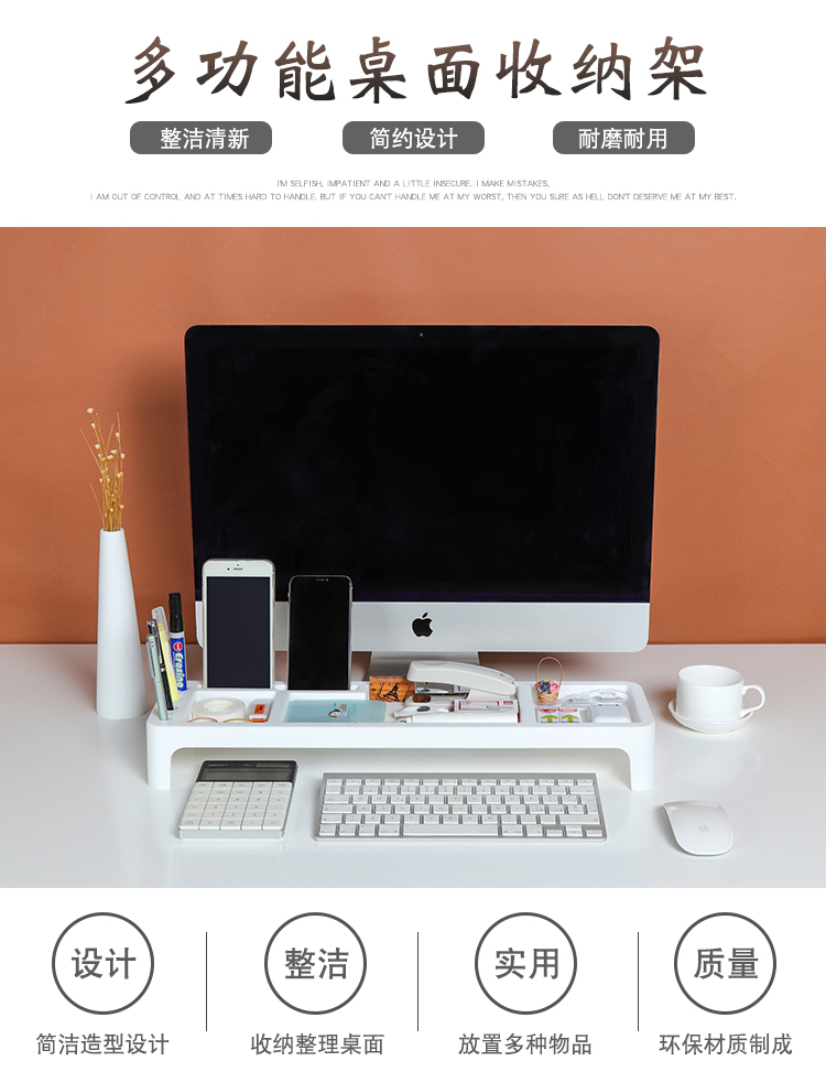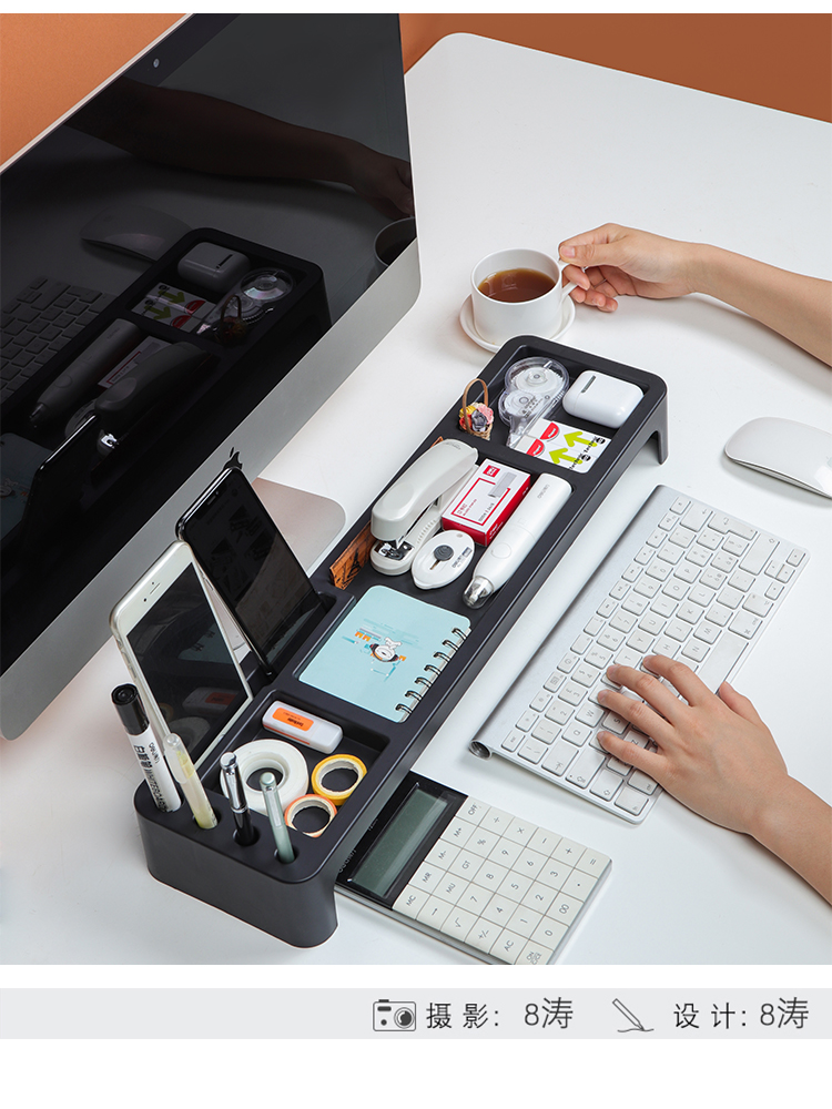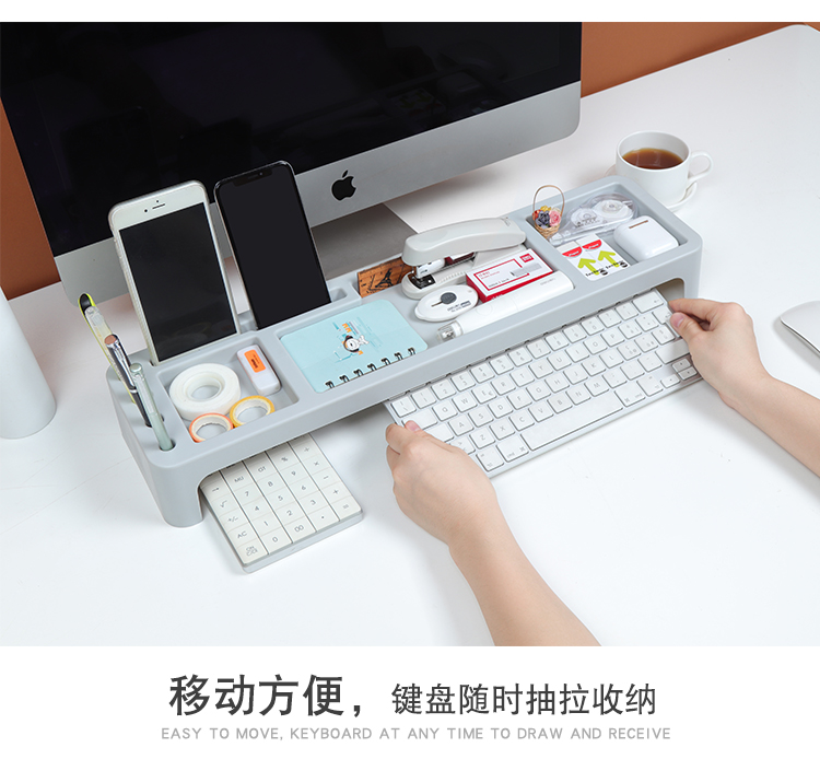 # 22QR 사무실 데스크톱 저장 상자 간단한 키보드 저장 랙 플라스틱 잡화 적합 상자 컴퓨터 책상 상승