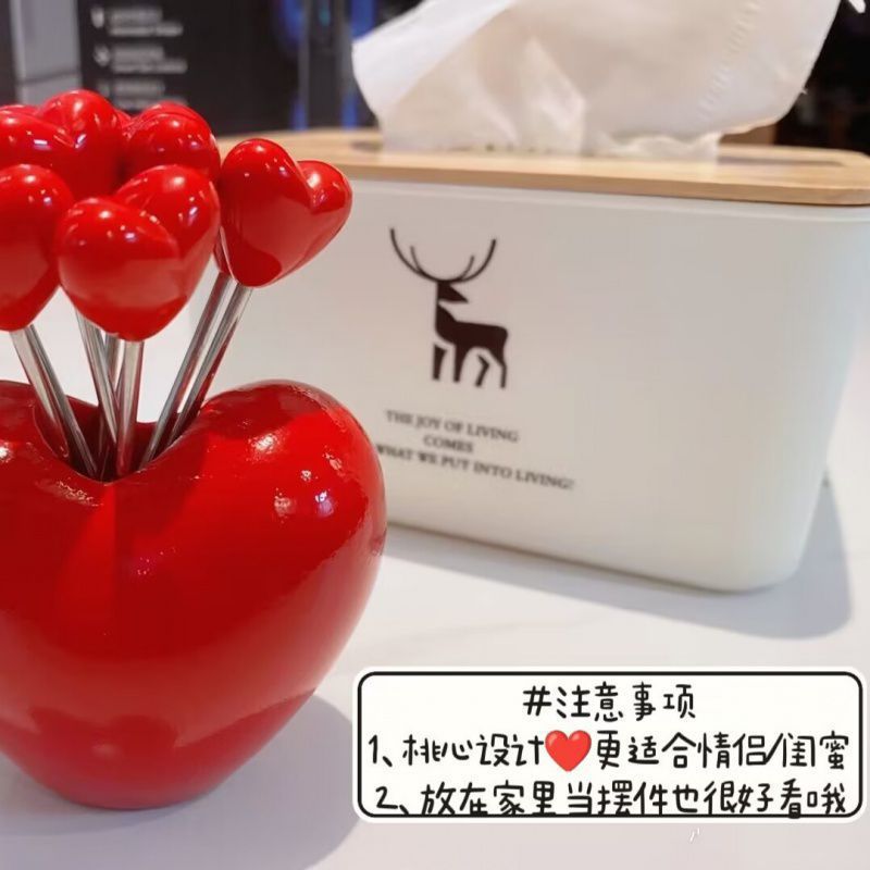 귀여운 홈 창조적 인 사랑 스테인리스 과일 포크 그물 붉은 폭발 높은 색 가치 과일 기호 9스토어 가기