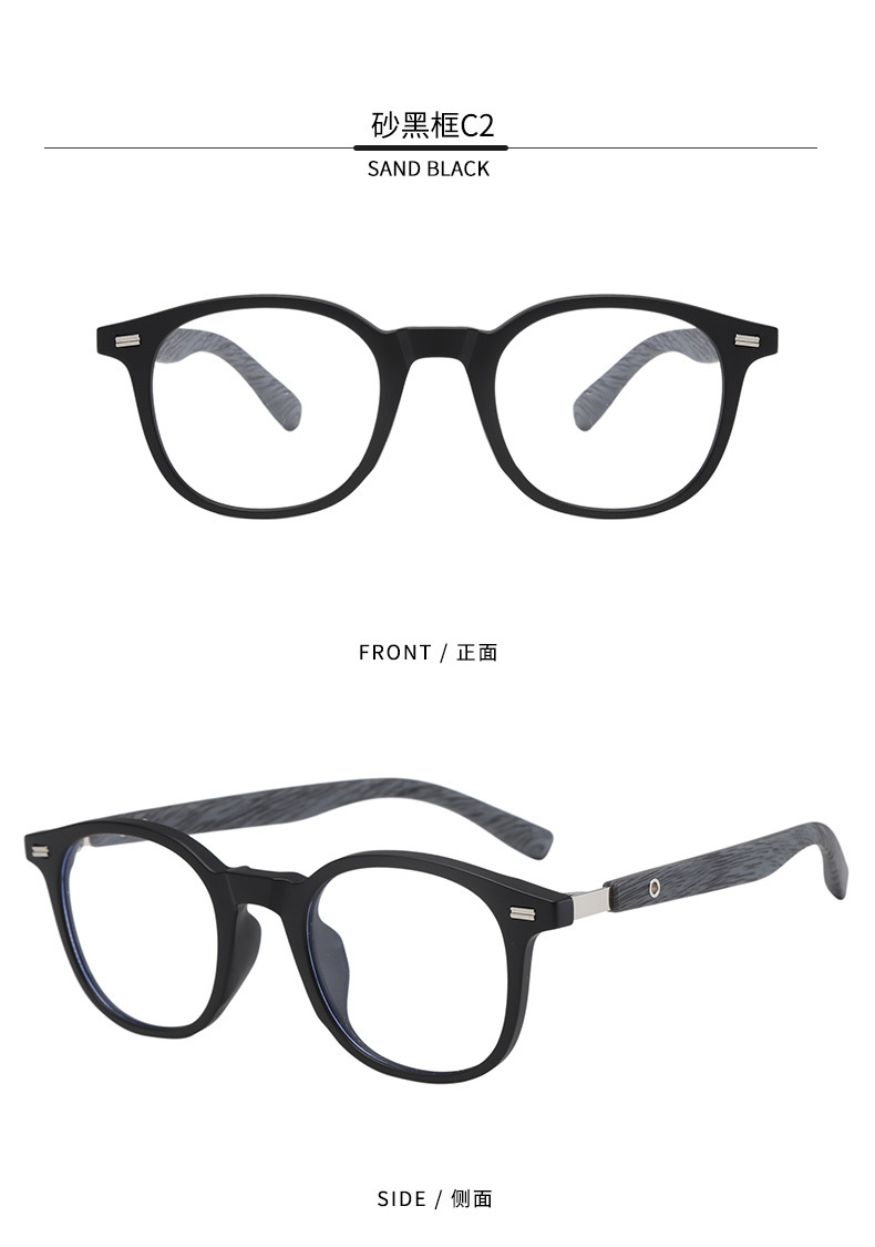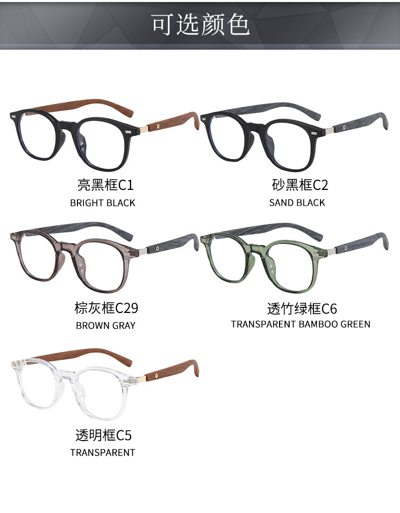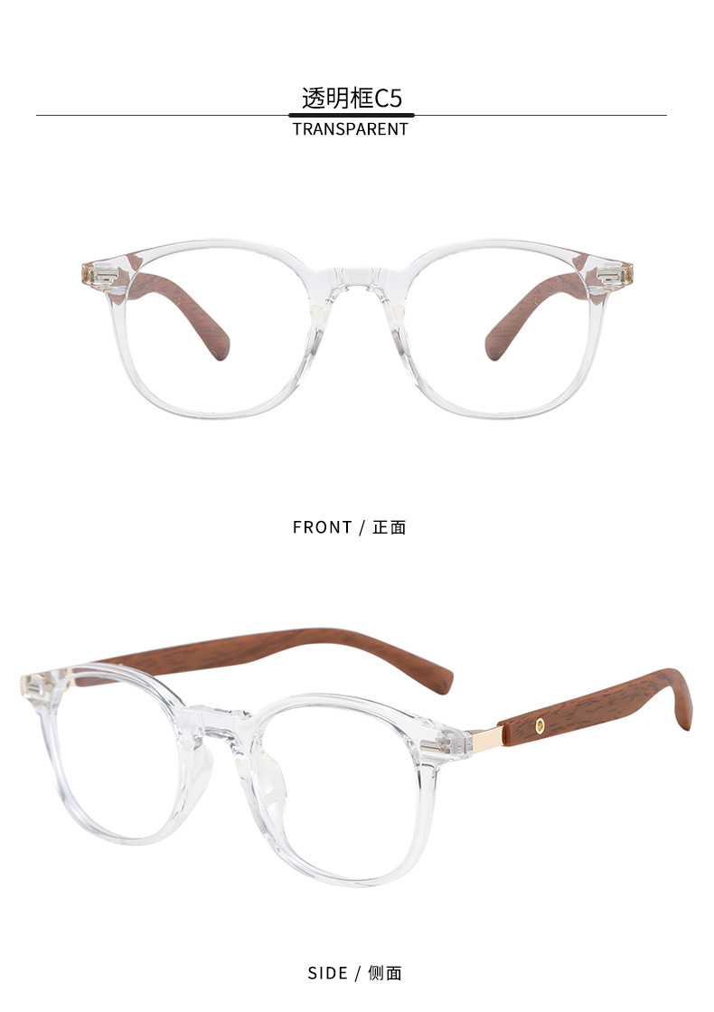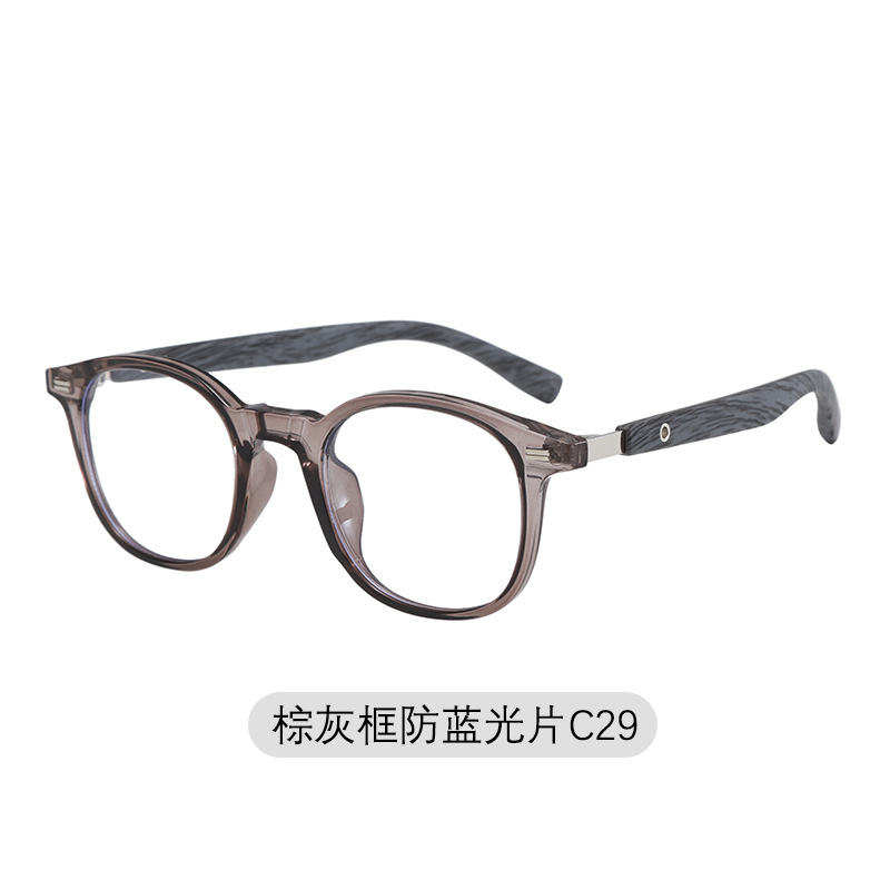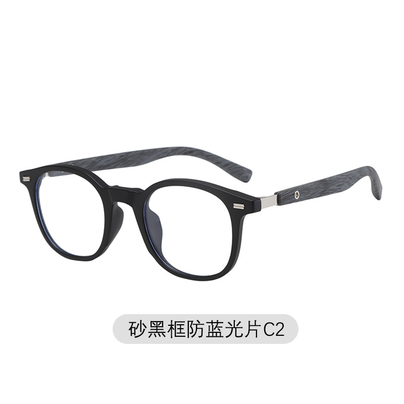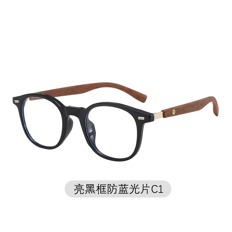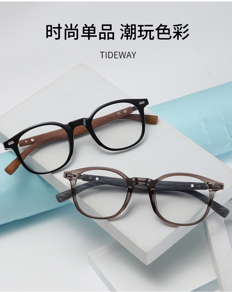 새로운 패션 TR90 남성과 여성의 맞춤형 안경 트렌드 하이 엔드 센스 HD 안티 블루 우드 그레인 다리 안경 프레임