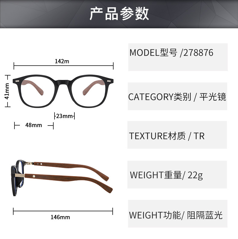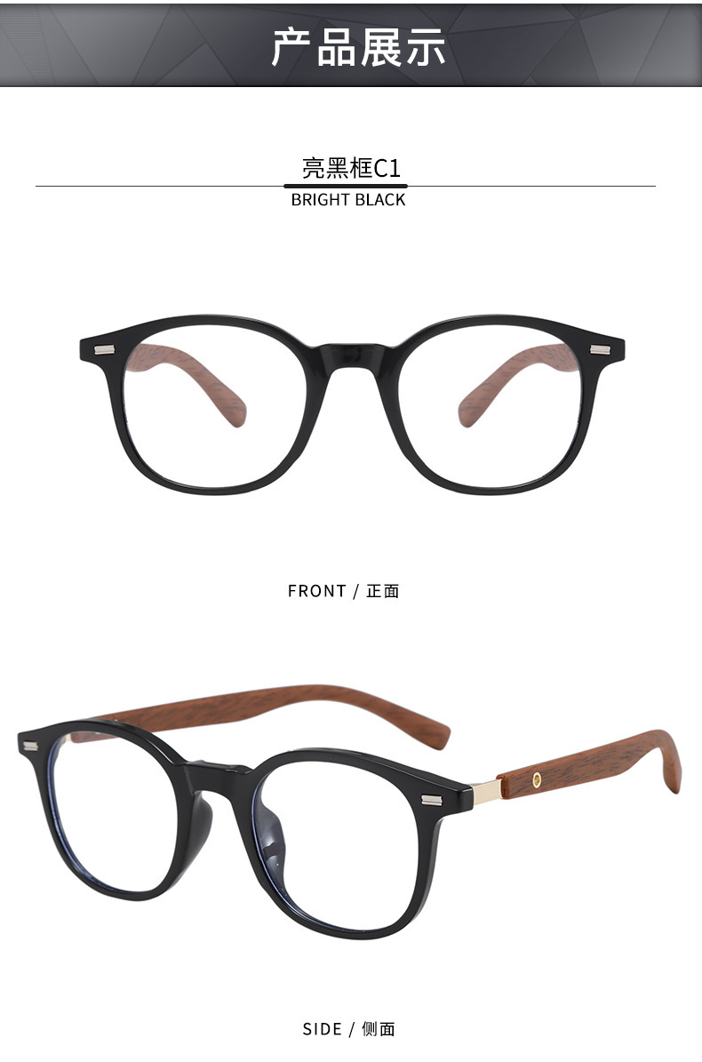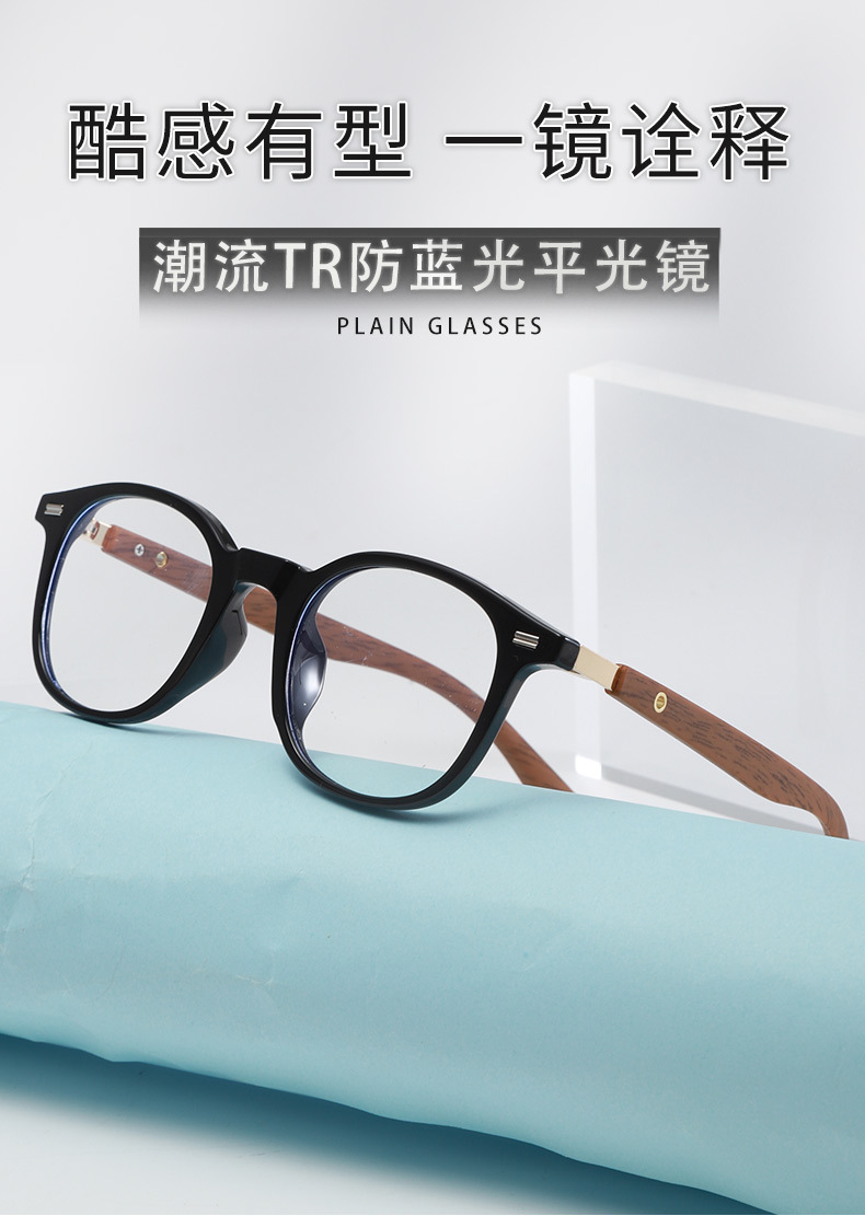 새로운 패션 TR90 남성과 여성의 맞춤형 안경 트렌드 하이 엔드 센스 HD 안티 블루 우드 그레인 다리 안경 프레임스토어 가기