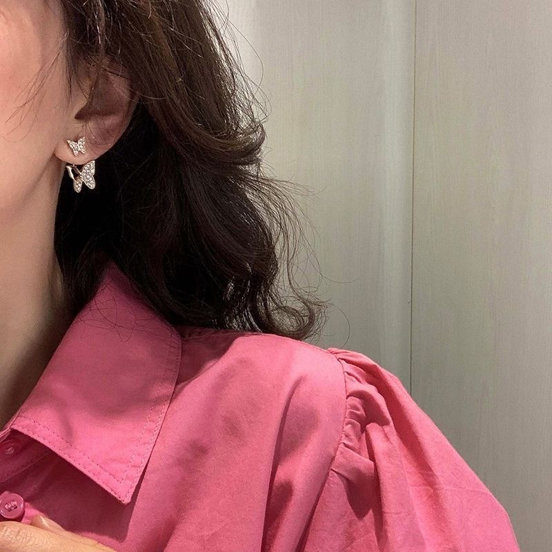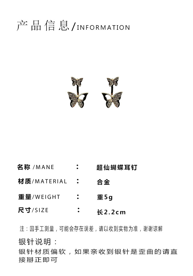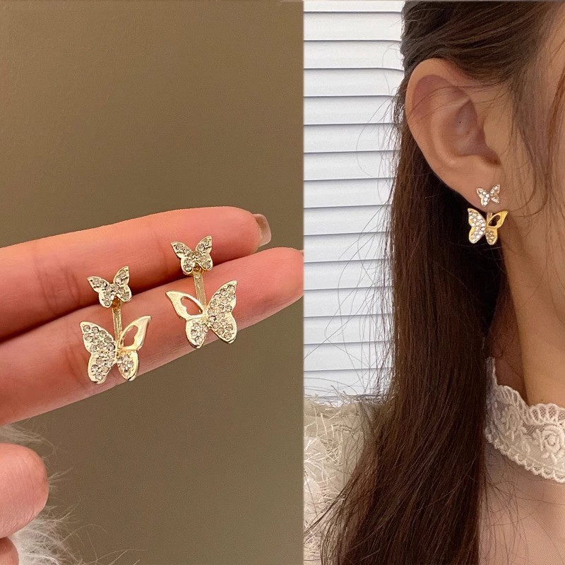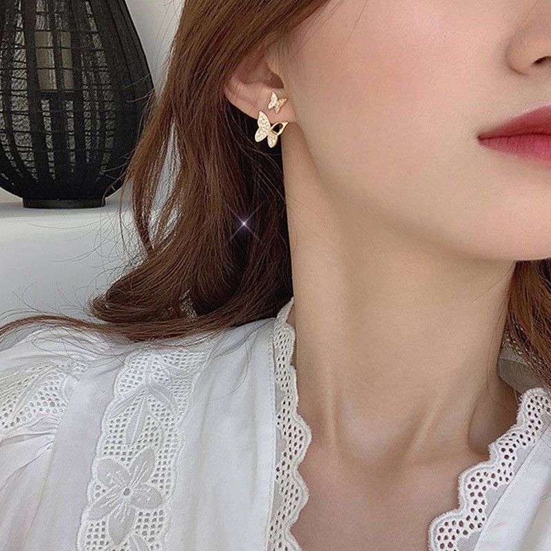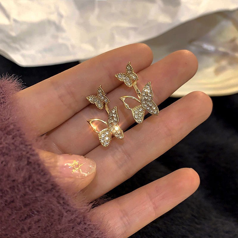 두 귀걸이 틈새 간단한 기질 부드러운 슈퍼 요정 절묘한 작은 다이아몬드 나비 여성을위한 높은 감각 귀걸이