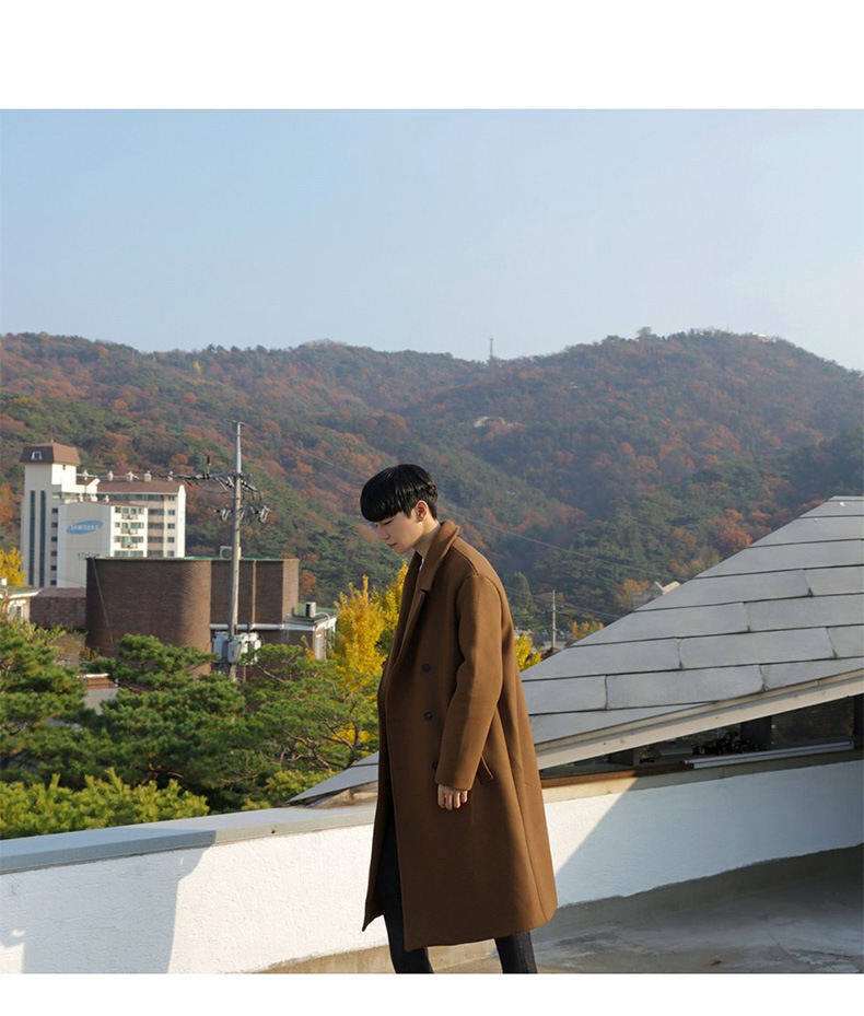 새로운 국경 남성 모직 코트 남자 중간 길이 무릎 이상 한국 유행 가을과 겨울 두꺼운 모직 코트스토어 가기
