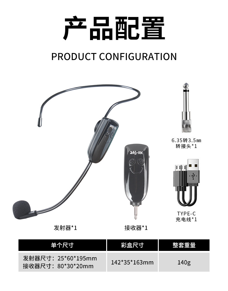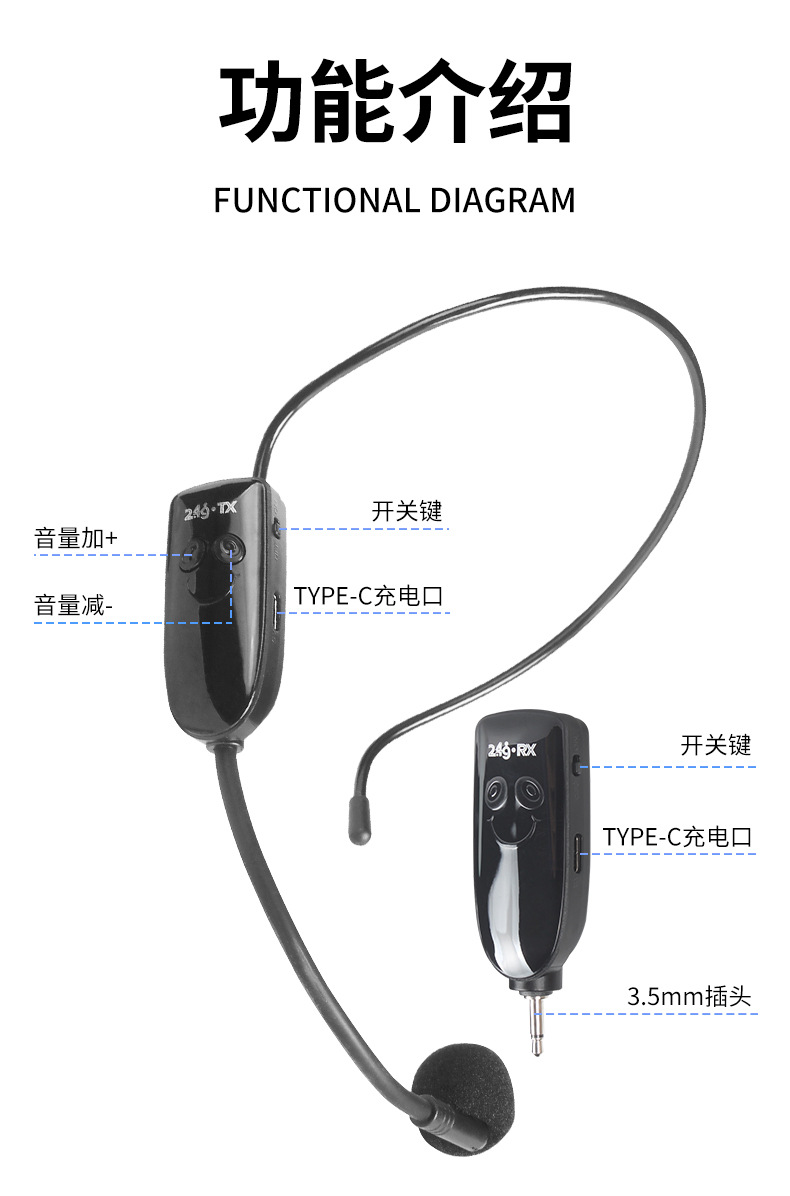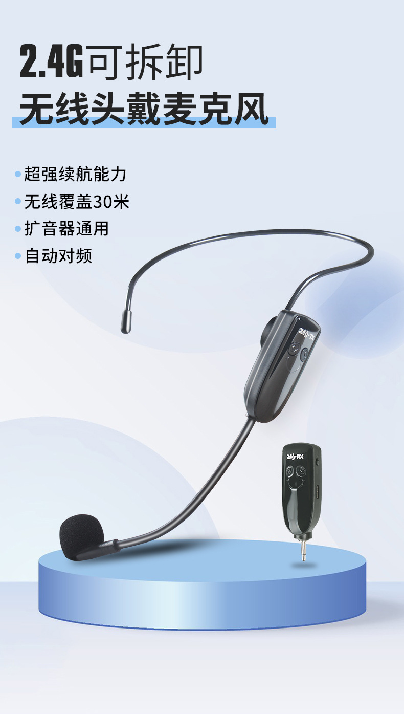 2.4G 마이크 헤드셋형 소형 확성기 범용 야외 블루투스 스피커 무선 헤드셋 교사 전용