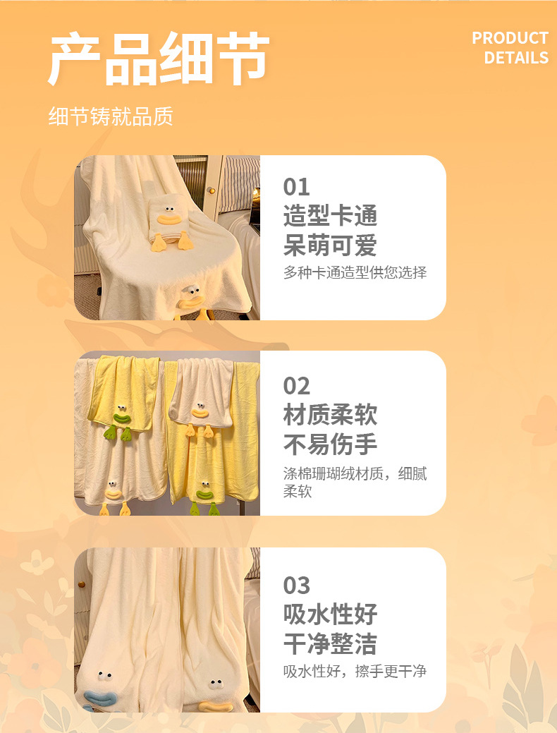 새로운 만화 동물 산호 흡수 학생 기숙사 목욕 귀여운 수건 목욕 수건 편지 세트 수건스토어 가기