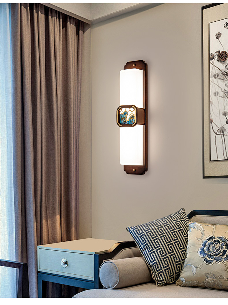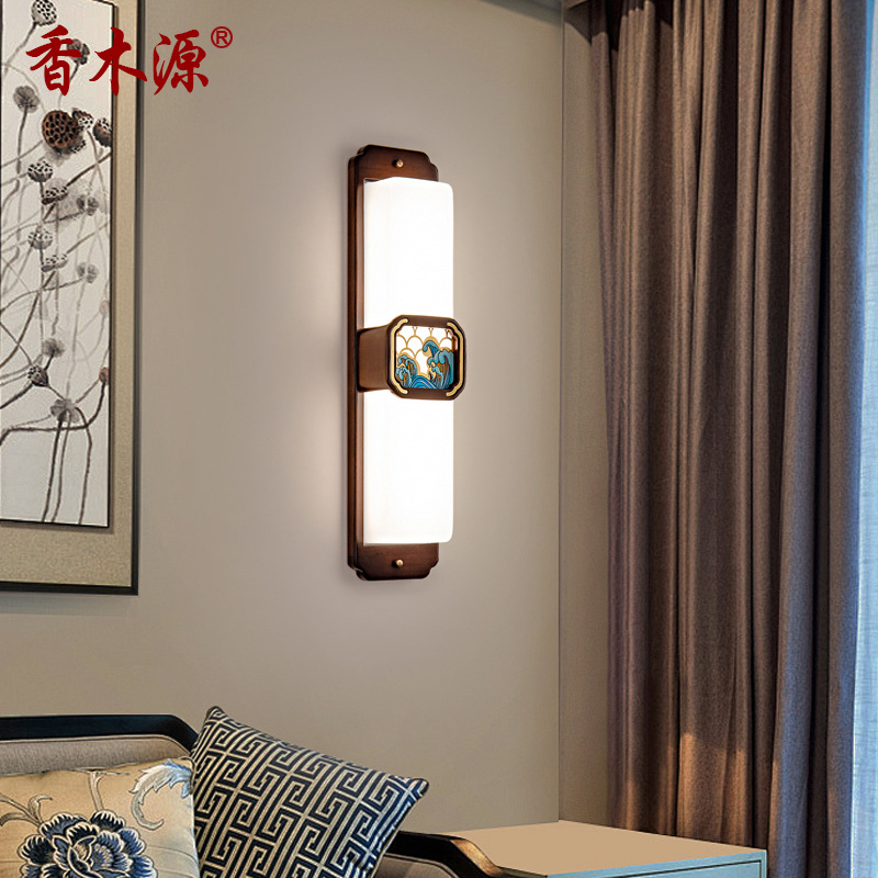 새로운 중국 스타일 벽 램프 모든 구리 단단한 나무 거실 배경 벽 침실 침실 통로 계단 중국 스타일의 선 램프 2121스토어 가기