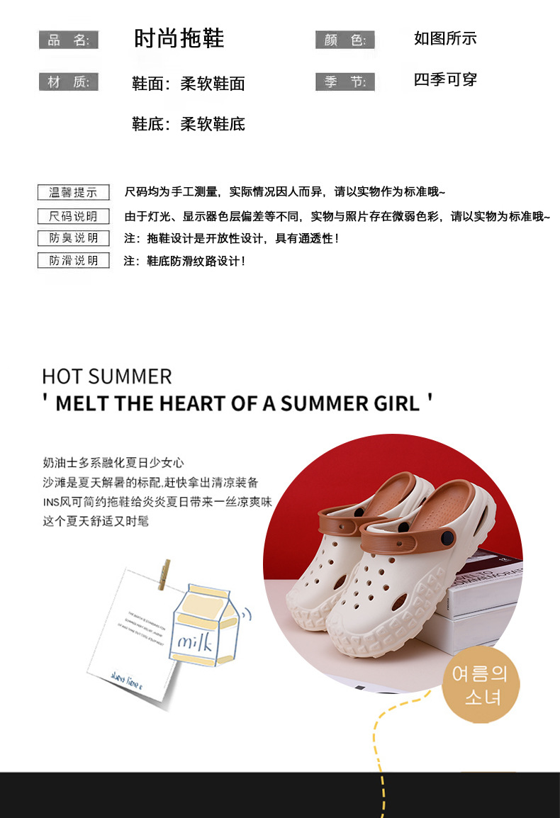 2024 새로운 여름 두꺼운 구멍 신발 에바 탈취제 여성 미끄럼 방취제 착용 방지 패션 야외 비치 바오투
