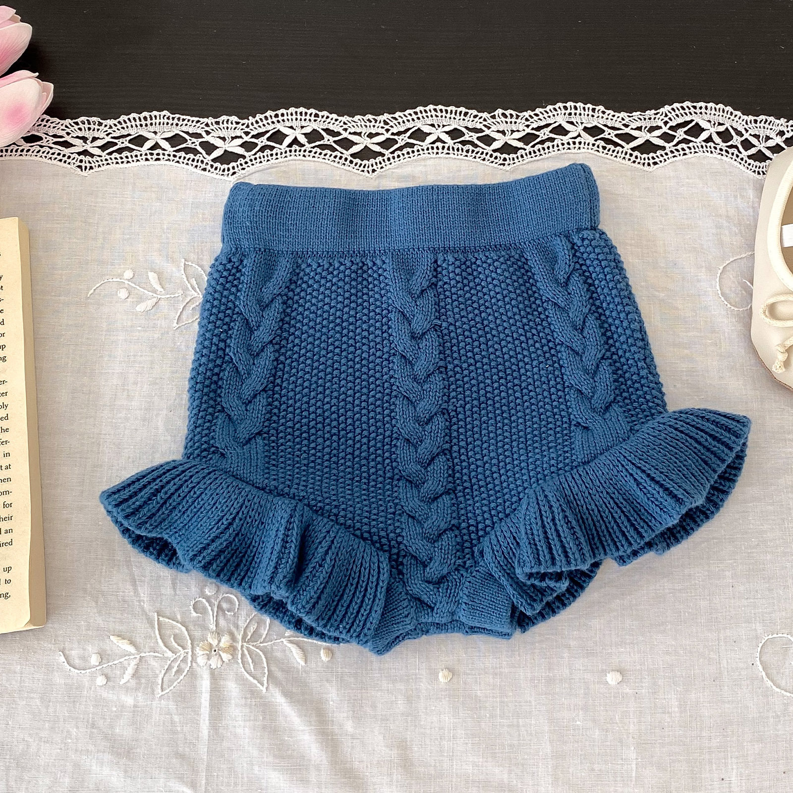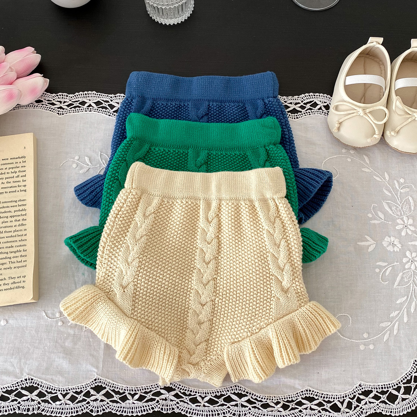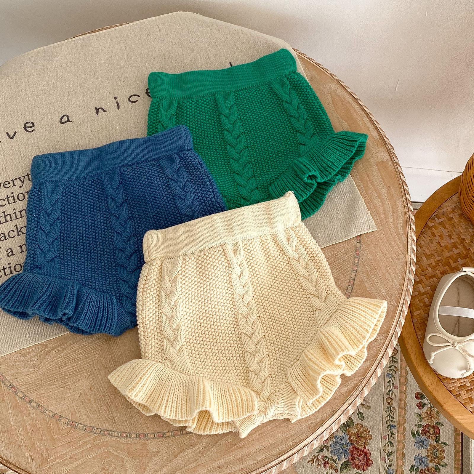 소년과 소녀를위한 유아 및 어린이를위한 가을 및 겨울 국경 니트 트위스트 빵 바지 양모 반바지