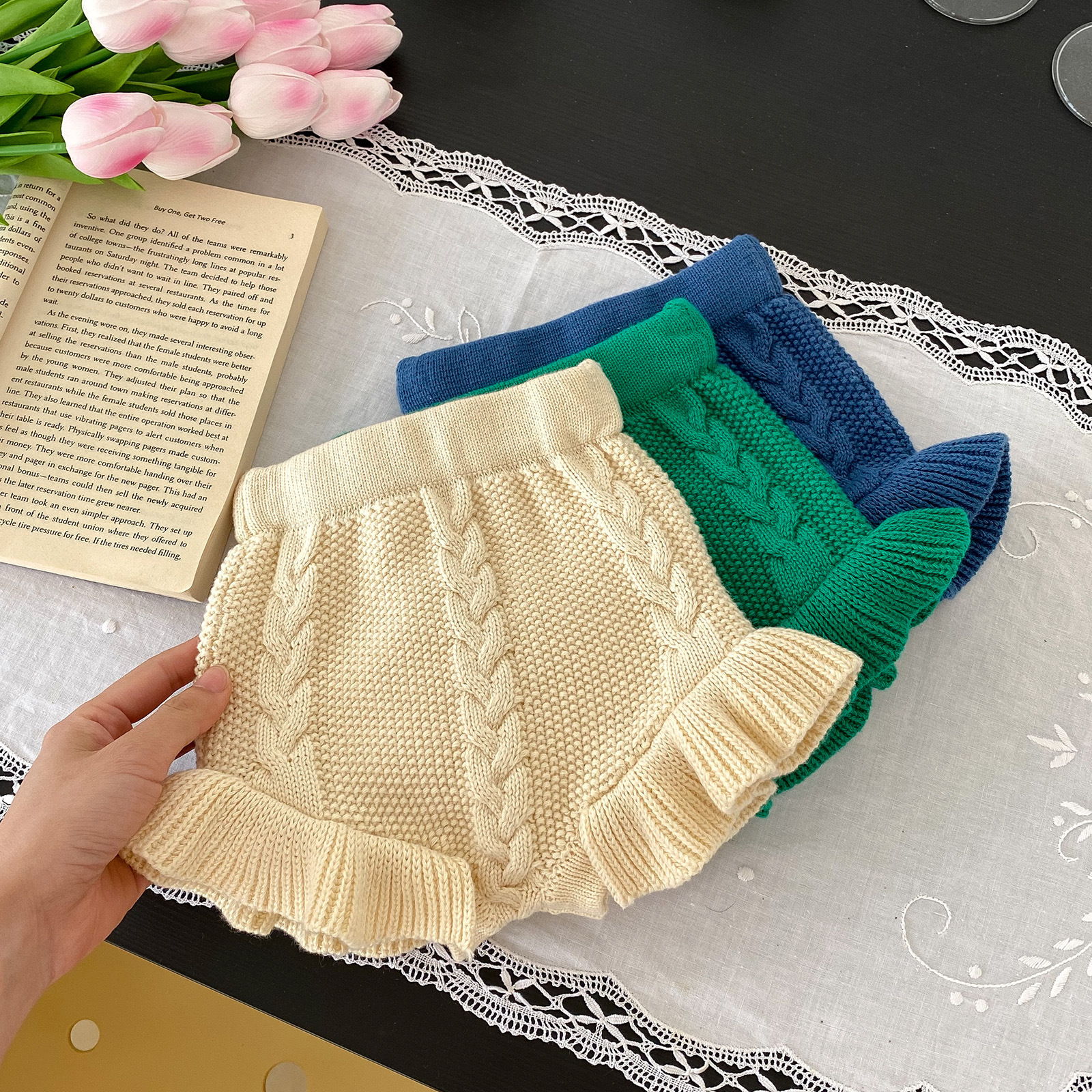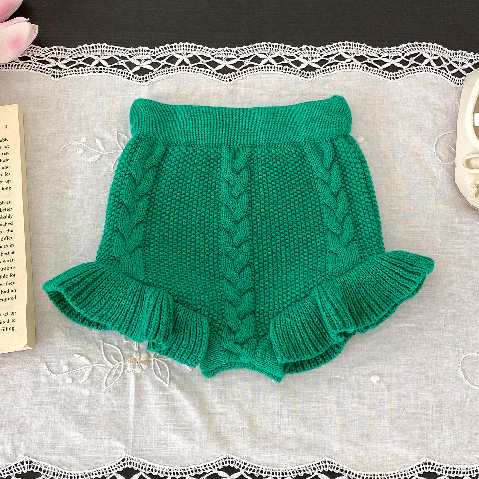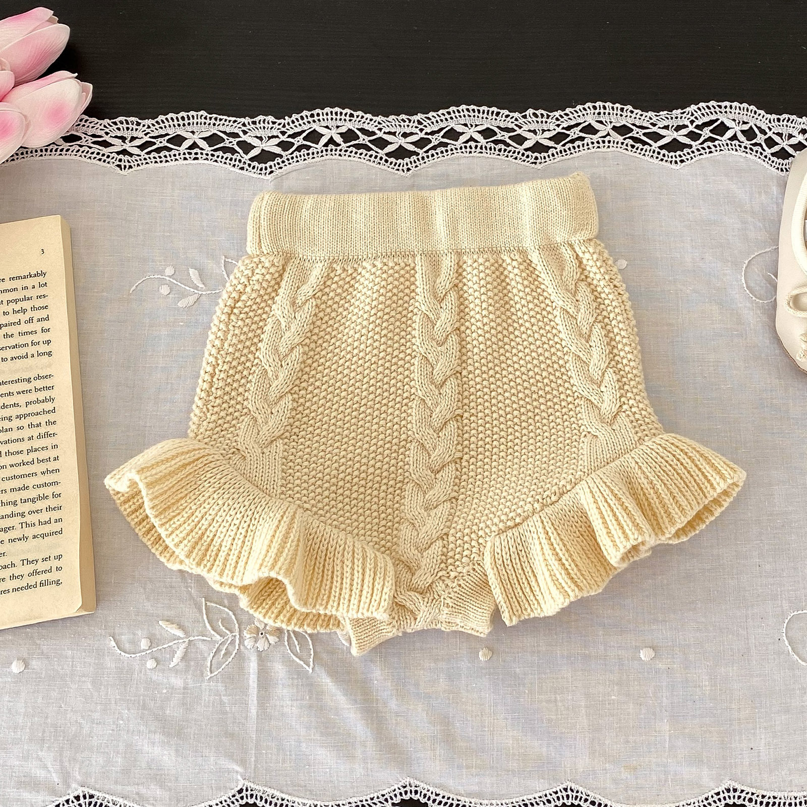 소년과 소녀를위한 유아 및 어린이를위한 가을 및 겨울 국경 니트 트위스트 빵 바지 양모 반바지
