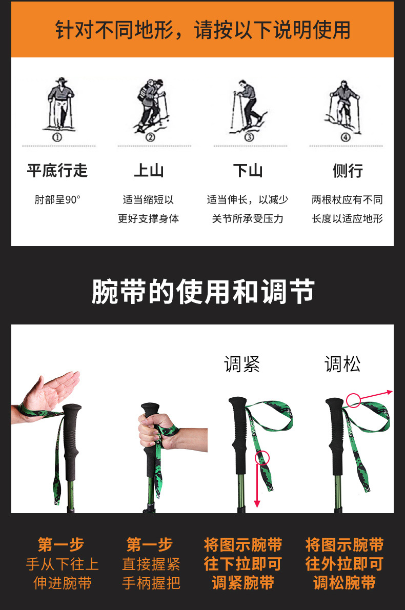 야외 등산 스틱 초경량 알루미늄 합금 휴대용 텔레스코픽 접이식 하이킹 스틱 등반 장비스토어 가기