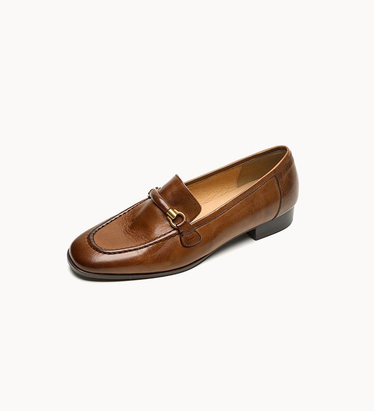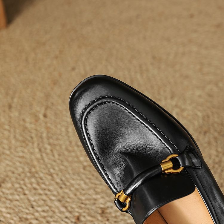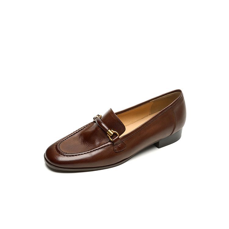 첫 번째 레이어 소 가죽 로퍼 여성용 플랫 힐 신발 2025 이른 봄 새 가죽 내부 및 외부 전체 가죽 라운드 헤드 컬러 부드러운 단일 레이어 신발 여성용스토어 가기