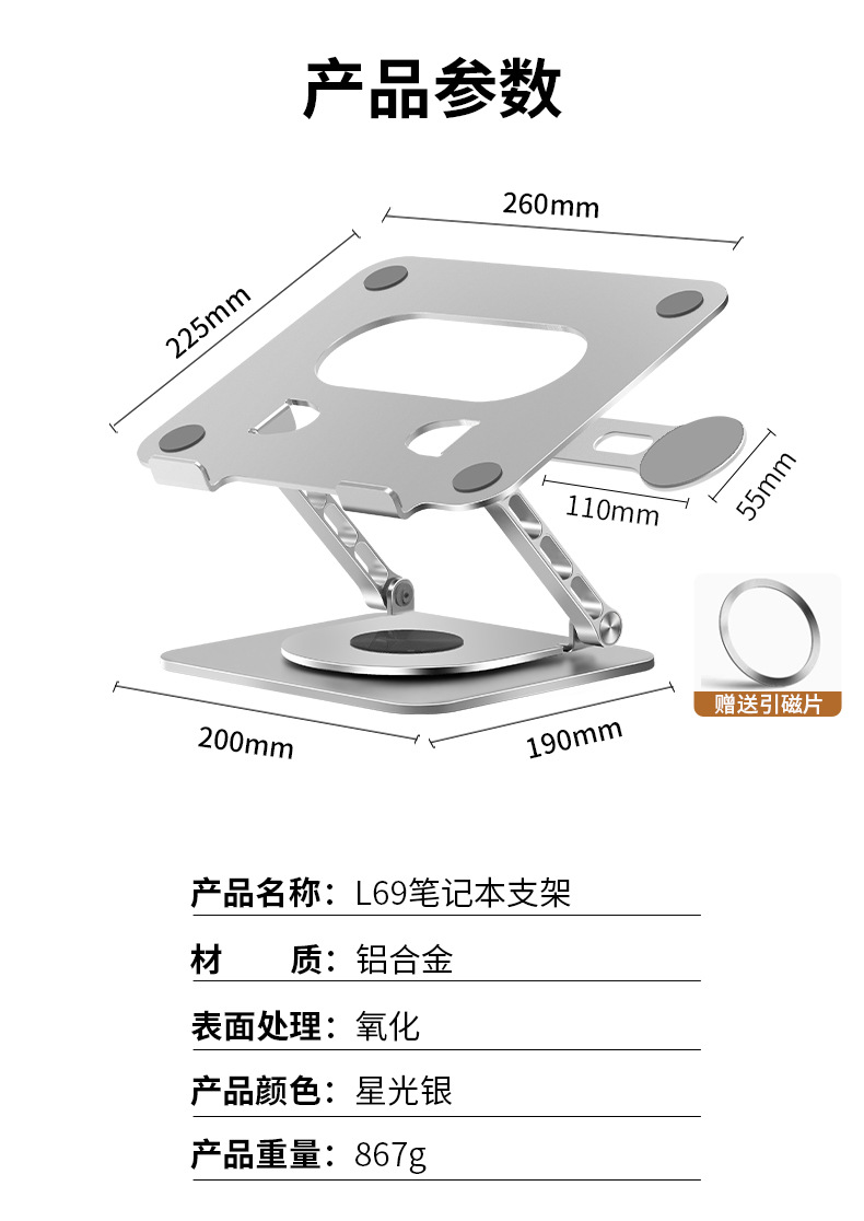 360 도 회전 데스크탑 노트북 브래킷 측면 장착 휴대 전화 브래킷 컴퓨터 브래킷 패드 높은 방열 지원