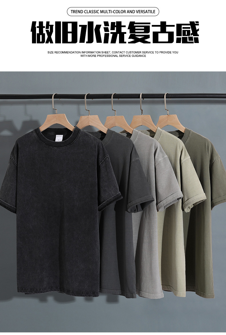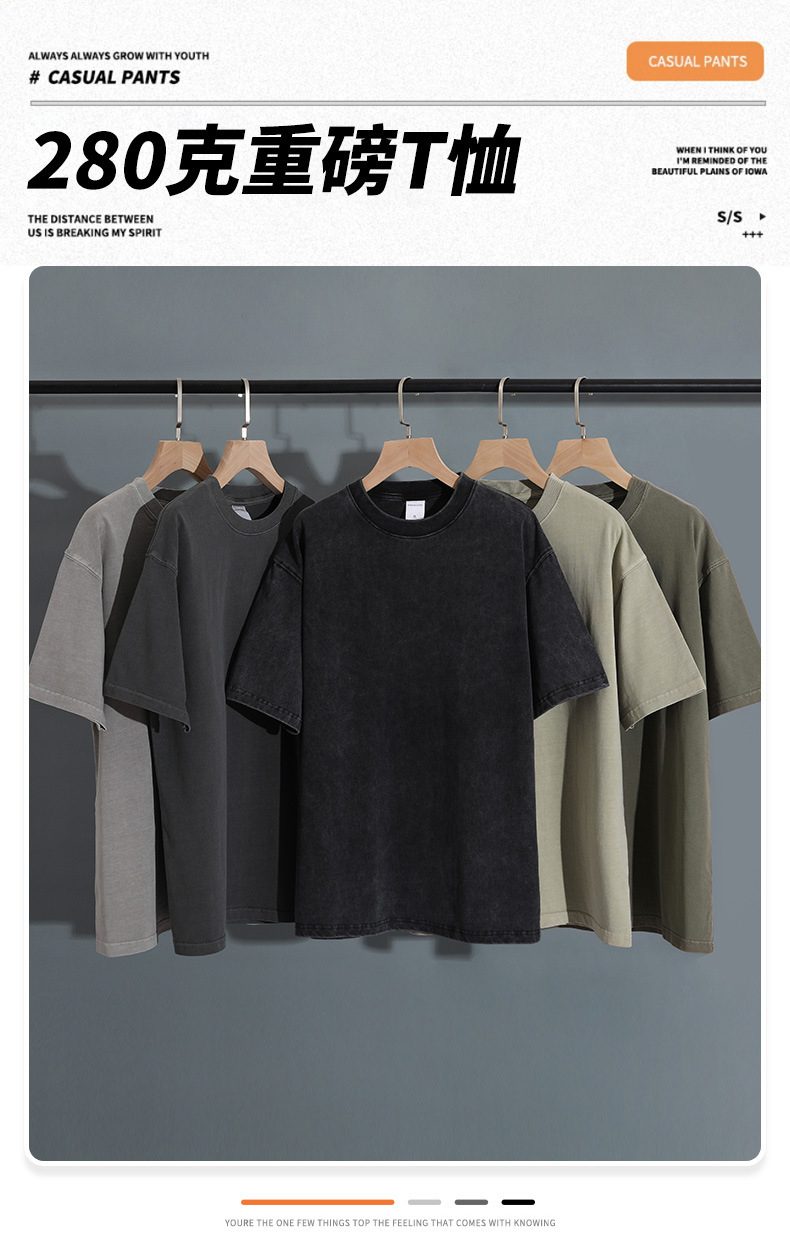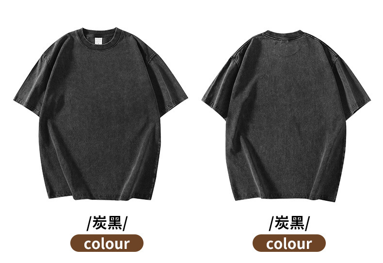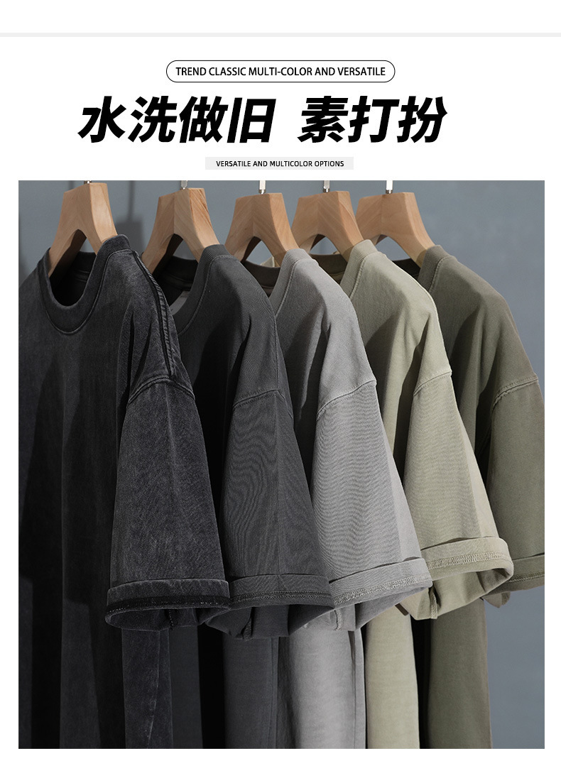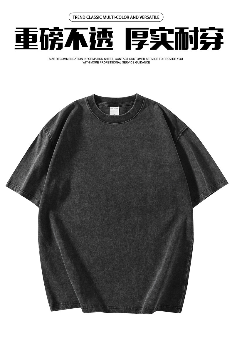 280g 헤비 레트로 블랙 쇼트 슬리브 티셔츠 남성용 루즈 숄더 탑 티셔츠 타이드 세탁 낡은 두꺼운 반소매스토어 가기