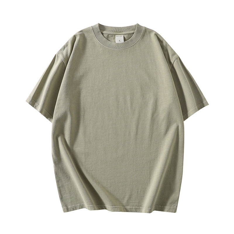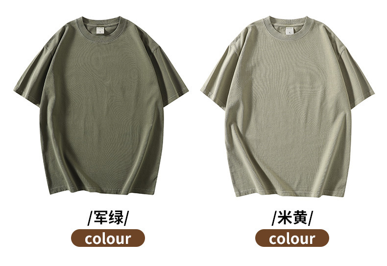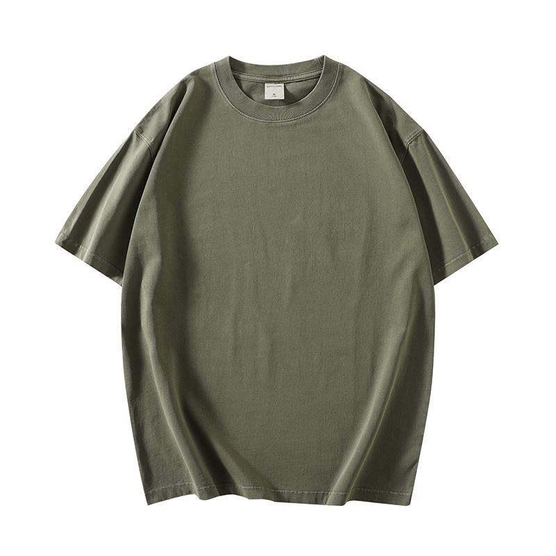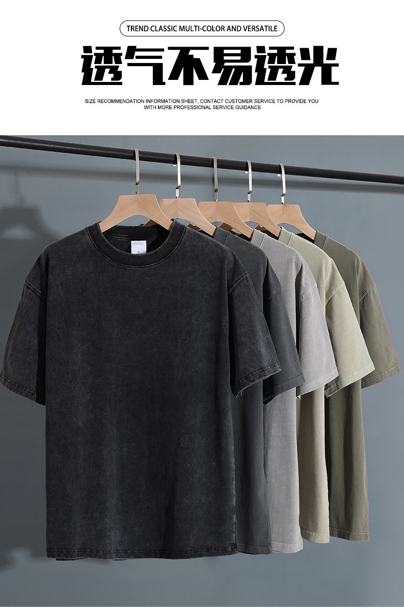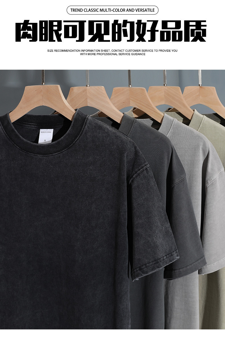 280g 헤비 레트로 블랙 쇼트 슬리브 티셔츠 남성용 루즈 숄더 탑 티셔츠 타이드 세탁 낡은 두꺼운 반소매스토어 가기
