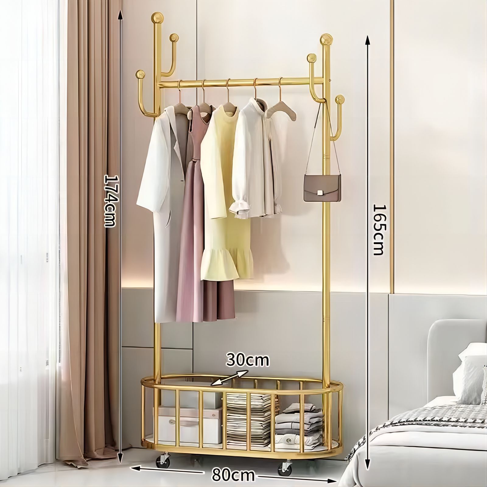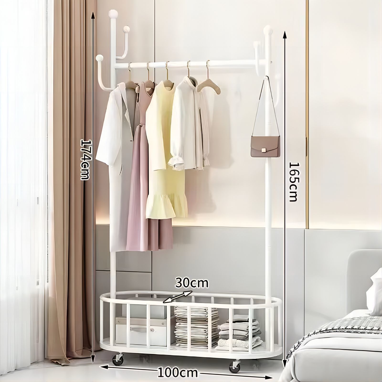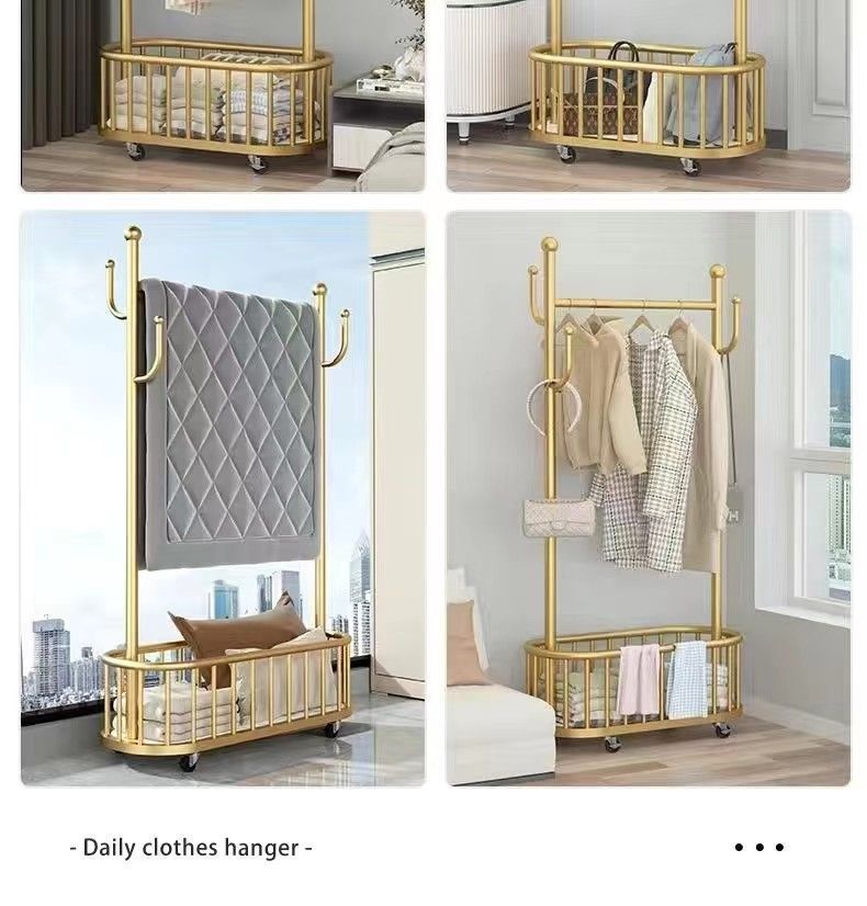 바닥 서 건조 랙 바퀴가 달린 두꺼운 옷걸이 가정용 간단한 거실 코트 랙 침실 보관 랙스토어 가기