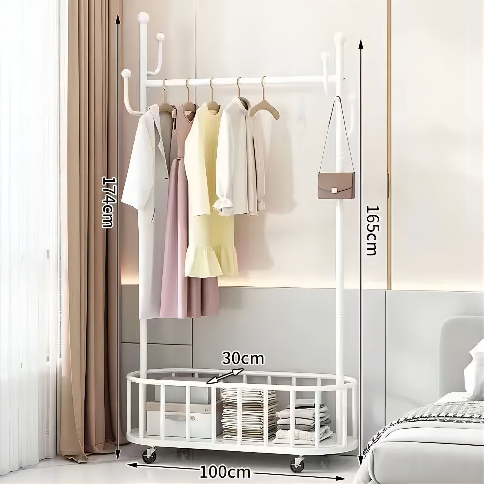 바닥 서 건조 랙 바퀴가 달린 두꺼운 옷걸이 가정용 간단한 거실 코트 랙 침실 보관 랙