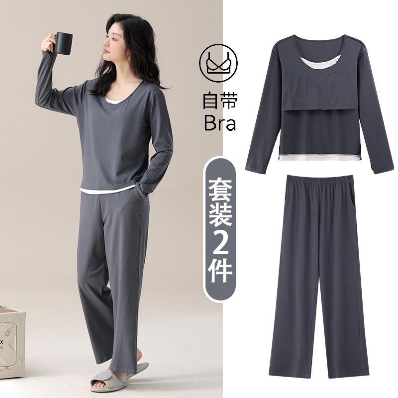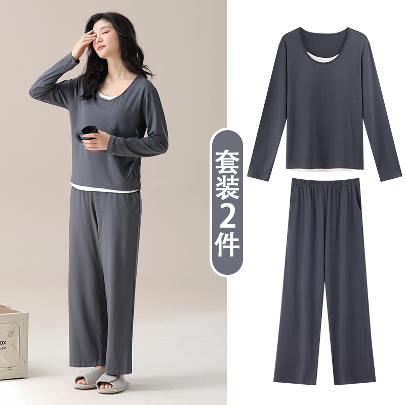 커플 잠옷 여성의 봄과 가을 모달 긴팔 간단한 홈 옷 남자의 겨울 하이 엔드 세트 입고스토어 가기
