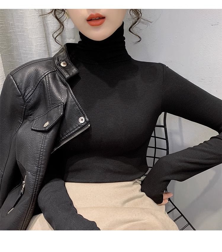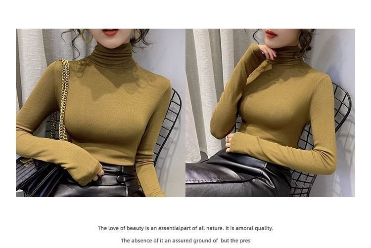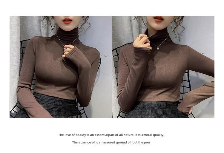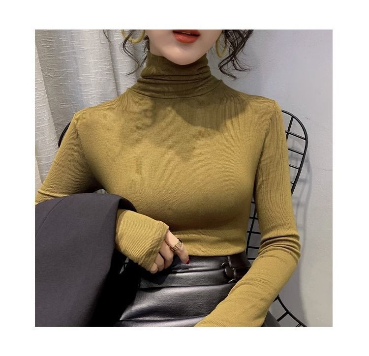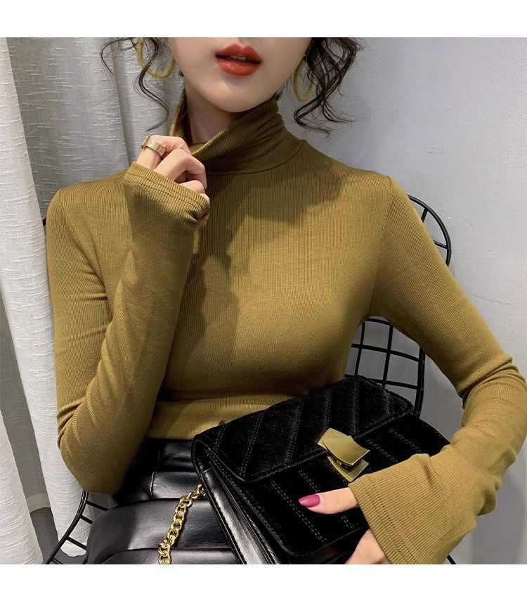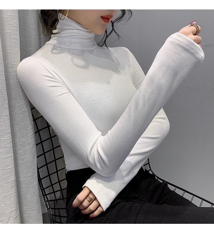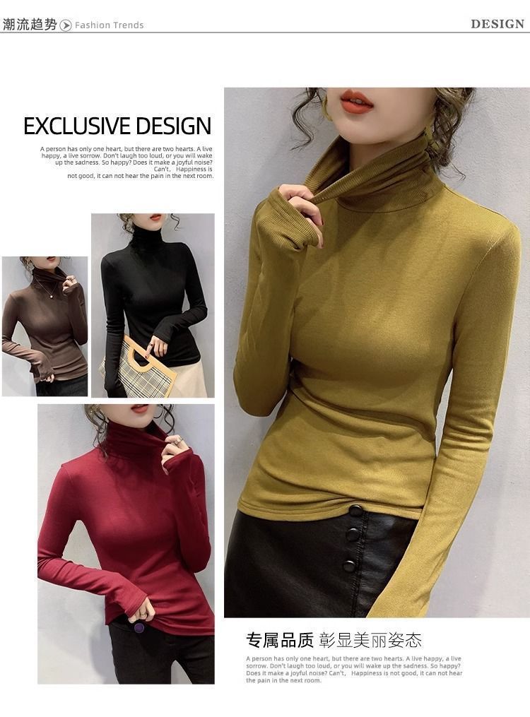 높은 목 슬림 새로운 도착 기모 두꺼운 실 긴팔 티셔츠 최고 여성의 가을과 겨울 따뜻한 인스타그램 인기베이스 셔츠스토어 가기