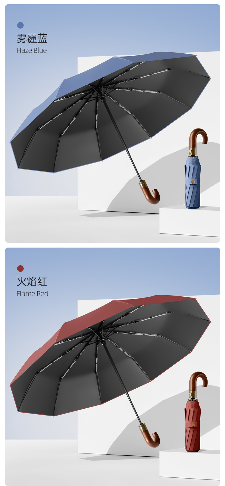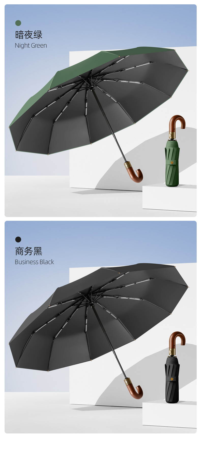 완전 자동 우산 나무 손잡이 곡선 후크 남자의 대형 바람 방지 블랙 고무 선 스크린 접히는 우산 남성과 여성의 선물 맑고 비오는 우산스토어 가기