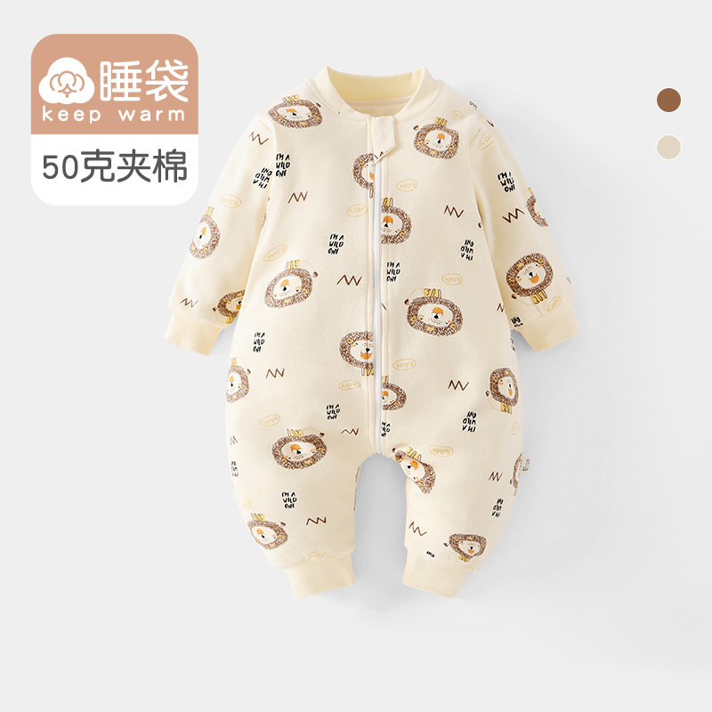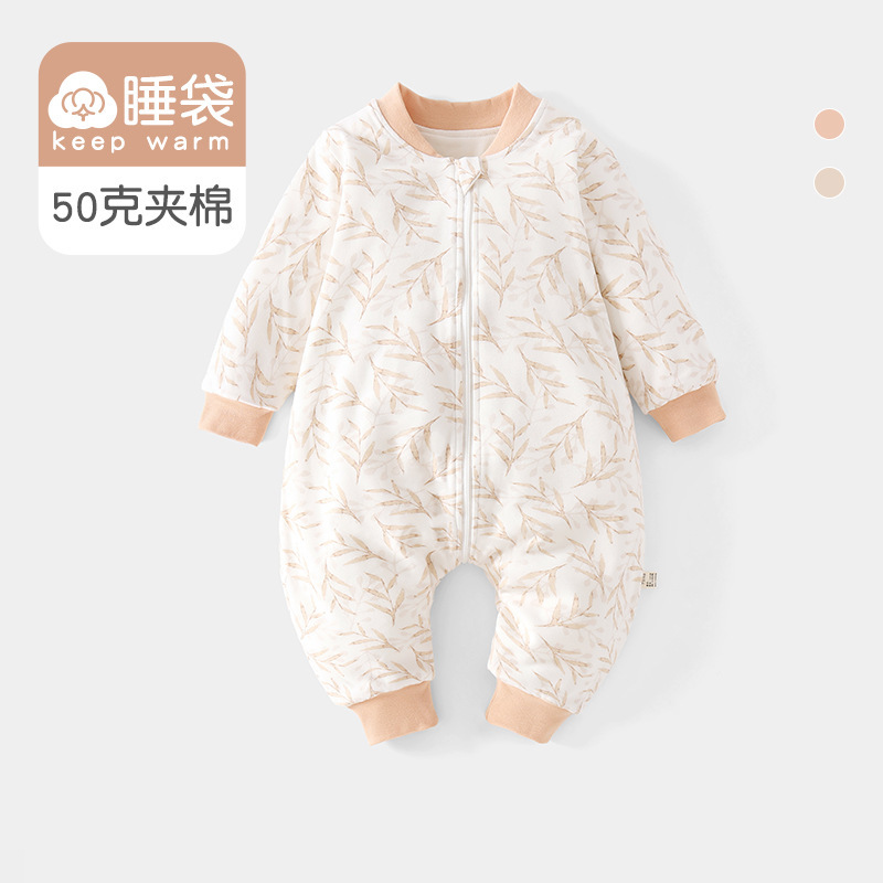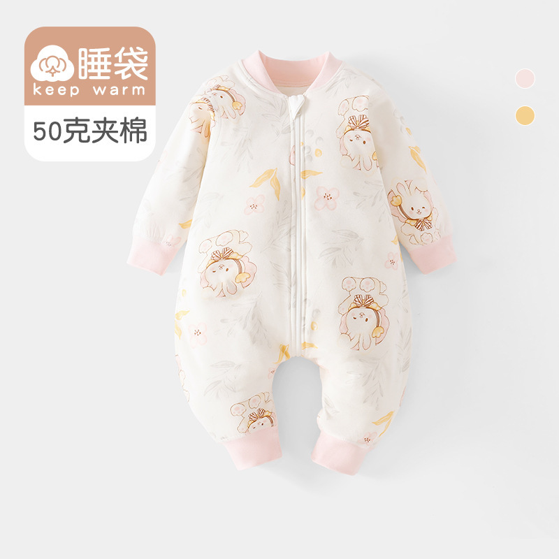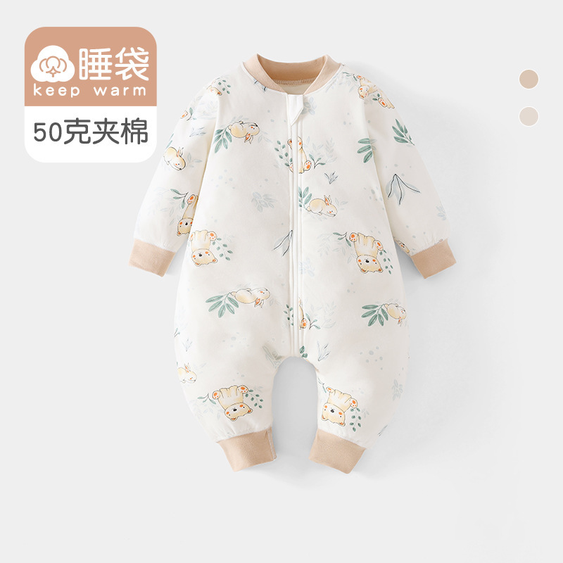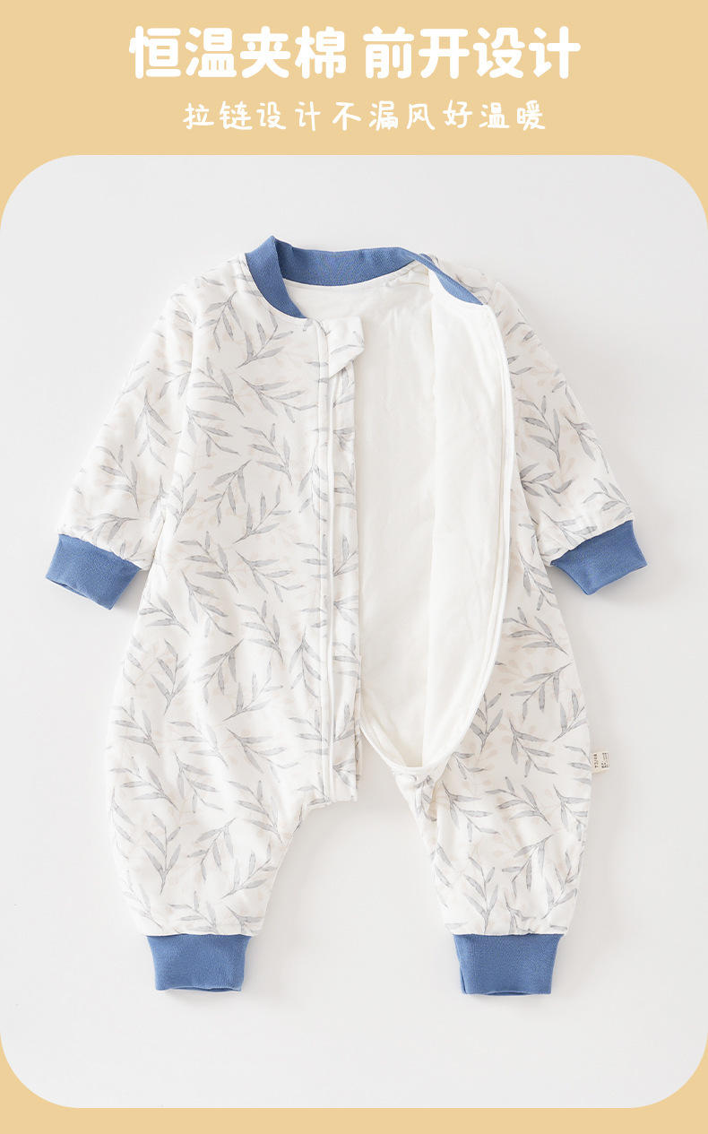 아기옷, 봄, 가을 가정복, 점프슈트, 유아 및 아동용 발차기 방지 이불, 두꺼운 누비 이불, 3지퍼 다리 분리형 침낭